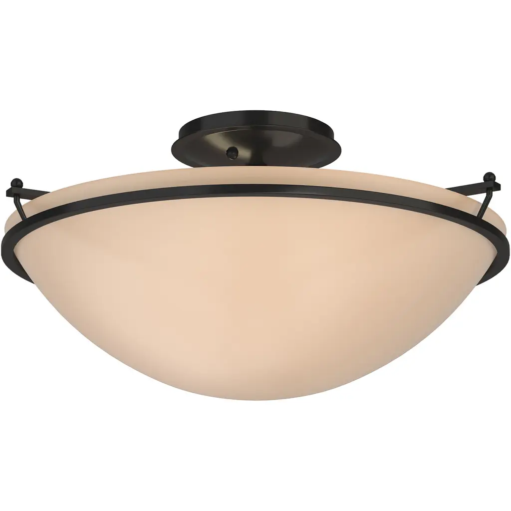 Plain Large Semi-Flush, Black Finish, Opal Glass