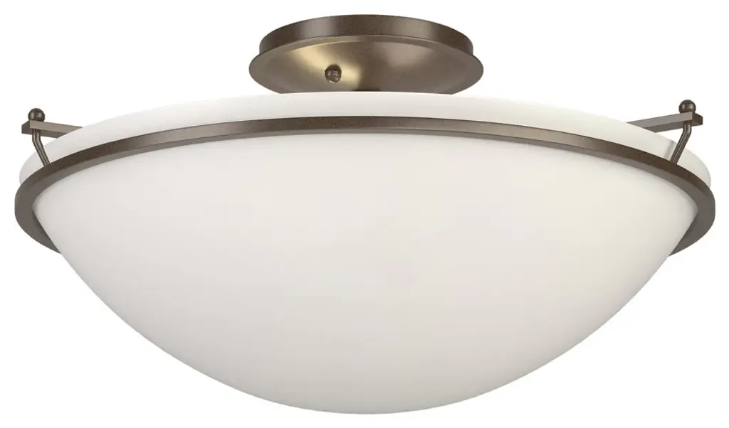 Plain Large Semi-Flush, Bronze Finish, Opal Glass