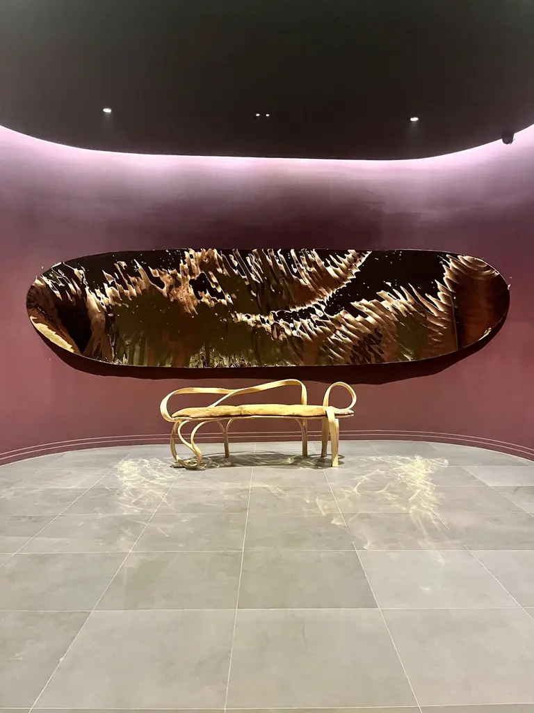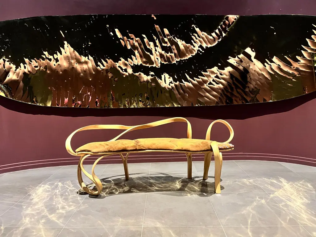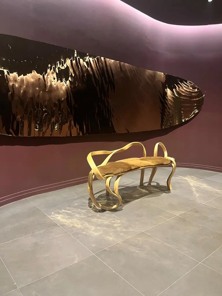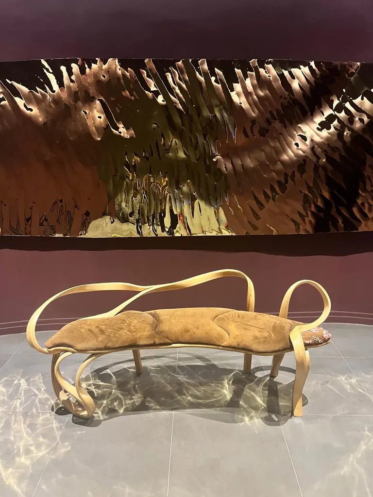 AboutPlana II - A lounge chassis designed and crafted by Raka Studio, is a part of the new collection, in which the studio has integrated a plain wooden surface. In this case, the plain surface is the seating area, which has been surrounded by organic design, made from the same material but with a totally different technique thus achieving and displaying the versatility of the studio's primary material of expression; Wood.The sculptural object is fully functional and comes with a soft velvet cushion covering the seating area. The colour of the wood and velvet are customizable.Raka Studio.