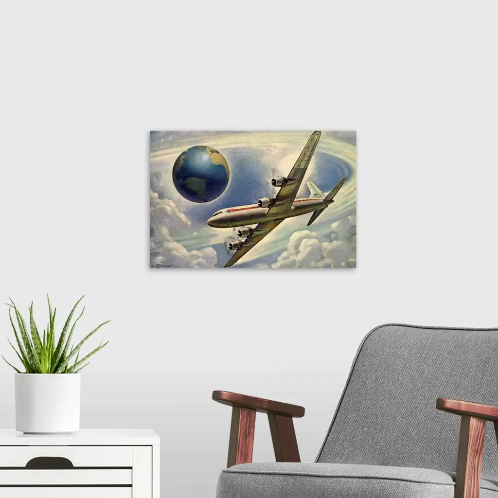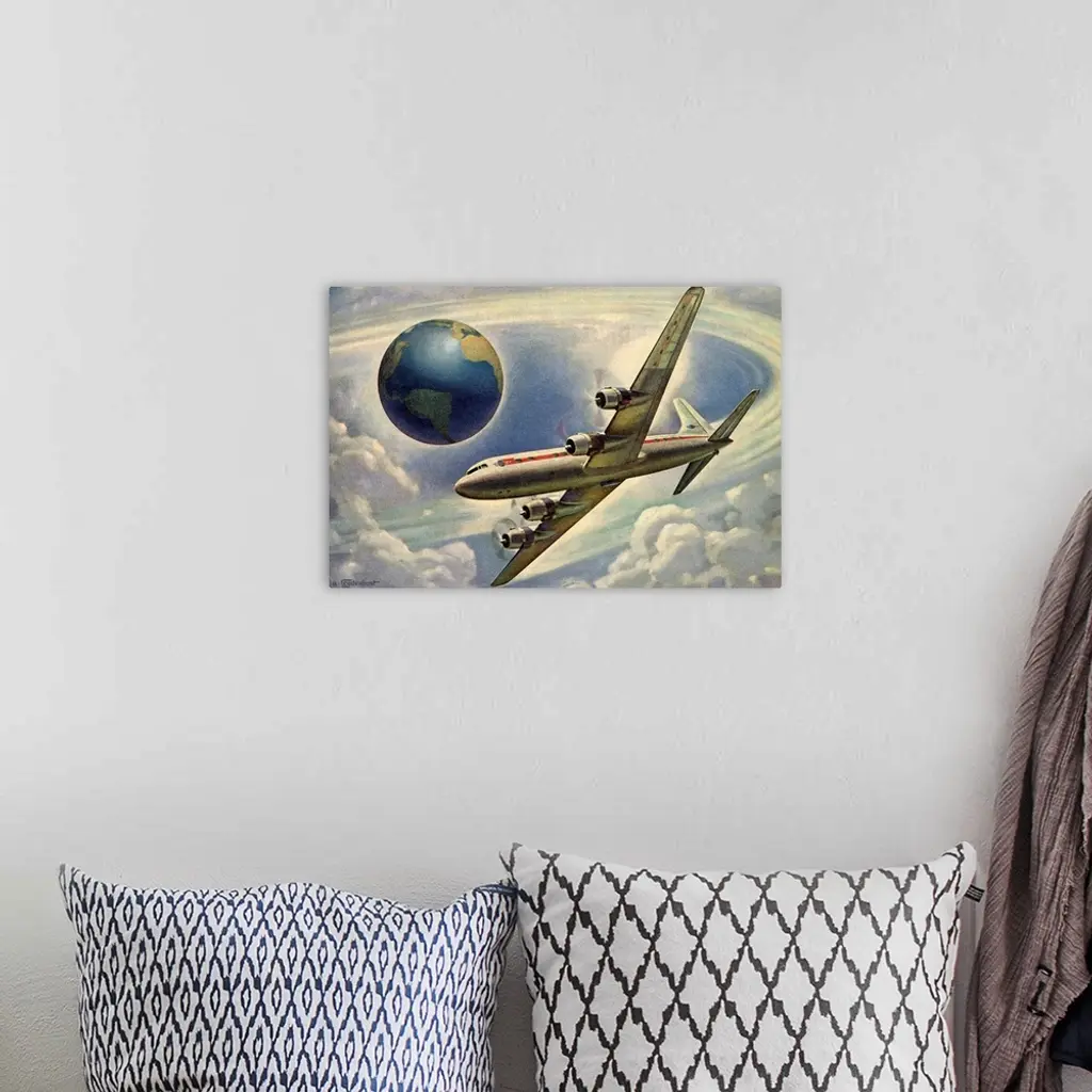 Plane Circling Globe wall art for home and office decor. Discover canvas art prints, photos, mural, big canvas art and framed wall art in GreatBigCanvas.com's varied collections.