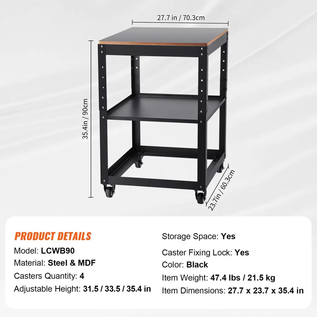 Stand Up to Any Challenge: Get ready for added security during all your difficult projects! The tool stand boards are up to 27.7"/ 70.3 cm long and 24"/ 60.3 cm wide. Durable and stable under 100 lbs/ 45 kg heavy loads. Pre-drilled holes allow for quick mounting of the planer to a stand. Three-Gear Height Fulfill Your Desires: Three-height gears are set in place for you to choose from! This upgraded planer table stand can be set at 31.5 in / 80 cm, 33.5 in / 85 cm, and 35.4 in / 90 cm. Stay in control and adjust seamlessly for continuously hassle-free work. 4 Stable Casters: Roll over any obstacle! Our portable planer stand features four swivel casters and two extra wheels that almost every competitor can't match. Quickly turn the stand from stationary to mobile. Besides, a premium foot action lock increases stability and security. More than Enough Space: Are you tired of running out of space? Well, there is a storage platform in the middle to accommodate a wide assortment of tools and equipment. Small tools at work are no longer troublesome to store, making your workspace more tidy and orderly. Maximum Versatility: This planer tool stand is compatible with the majority of planers and saws on the market. It's ideal for supporting a variety of smaller, compact bench-top machines, power tools, and accessories. Package Content 1 x Planer Stand