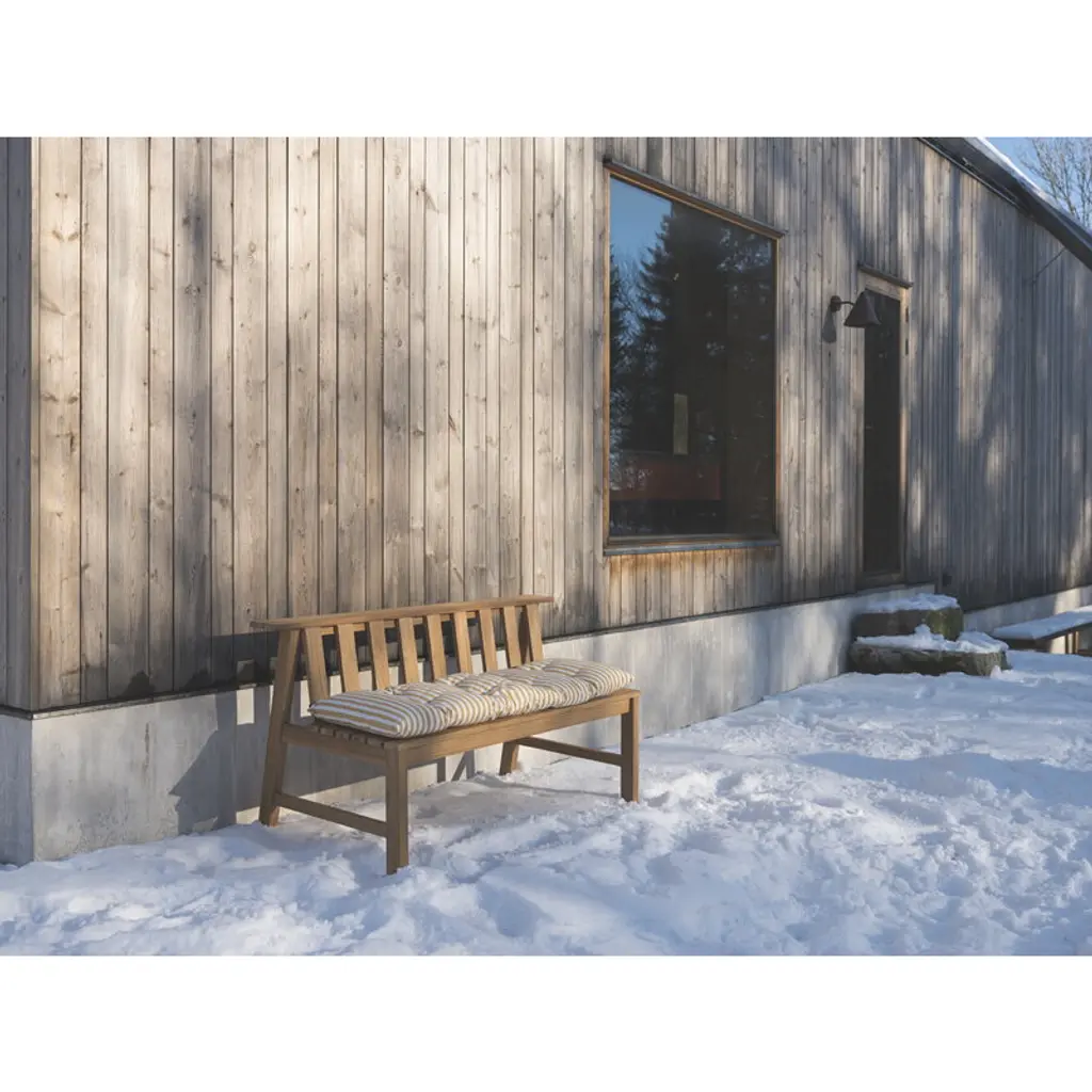 Skagerak’s Plank bench, designed by Aurelien Barbry, is a beautiful outdoor bench combining organic character of teak wood with clear, angular lines. The Plank bench features two horizontal planks on the top of the backrest, forming a convenient shelf for small flower pots, a wine glass and a book or lanterns to light up gloomy summer evenings in the garden. For even more comfortable seating, add a separately sold cushion on the bench.