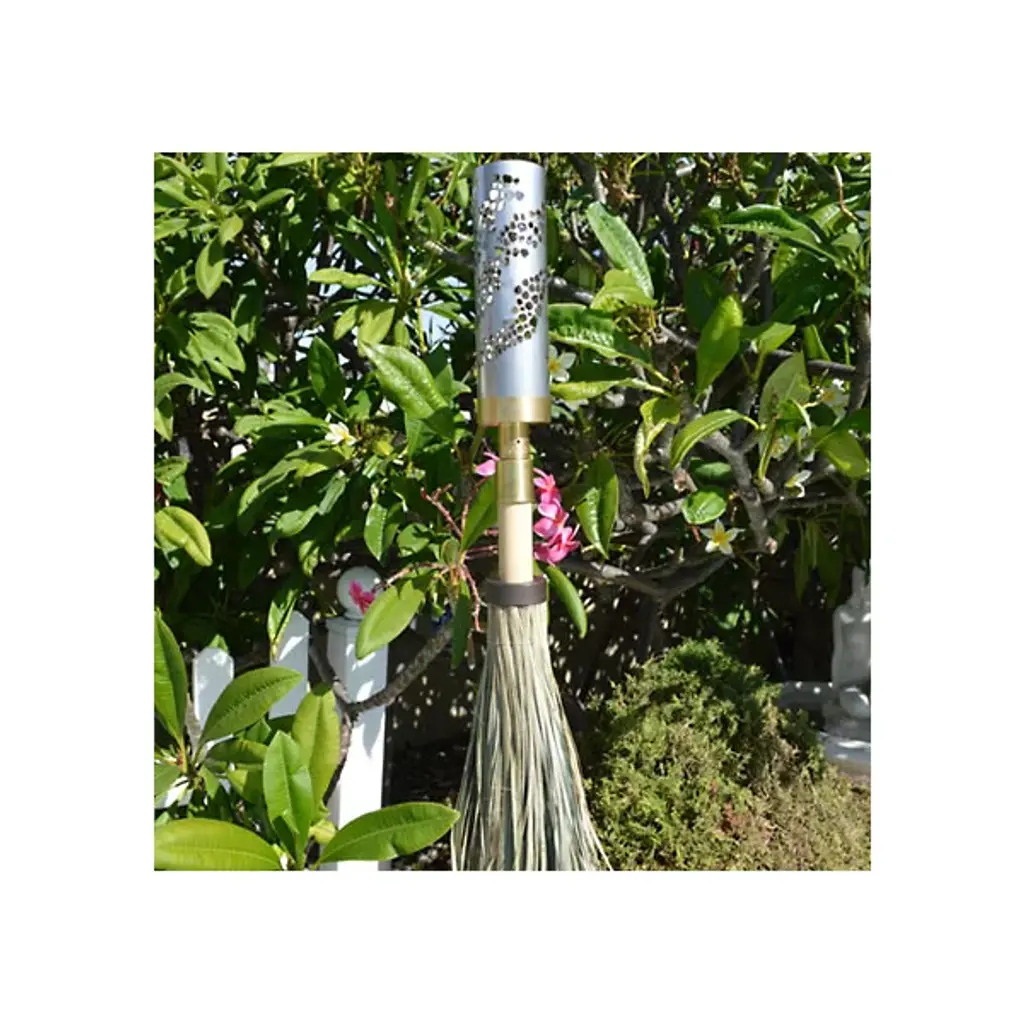 A festive, tropical addition to your outdoor walkways and patio areas. The Focus Industries Plasma Cut Natural Gas or Propane Tiki Torch illuminates with the pleasant, hypnotic brilliance of a flame embodied in perforated plasma cut designs. Its stem, supplied by installers, acts as a supply-feed and is topped with a cast brass head, a cast brass pipe adapter, and a stainless steel perforated flame screen. Professional help is required to make piping and gas line connections, and an extended lighter is needed for manual ignition. Tiki Skirt available separately.