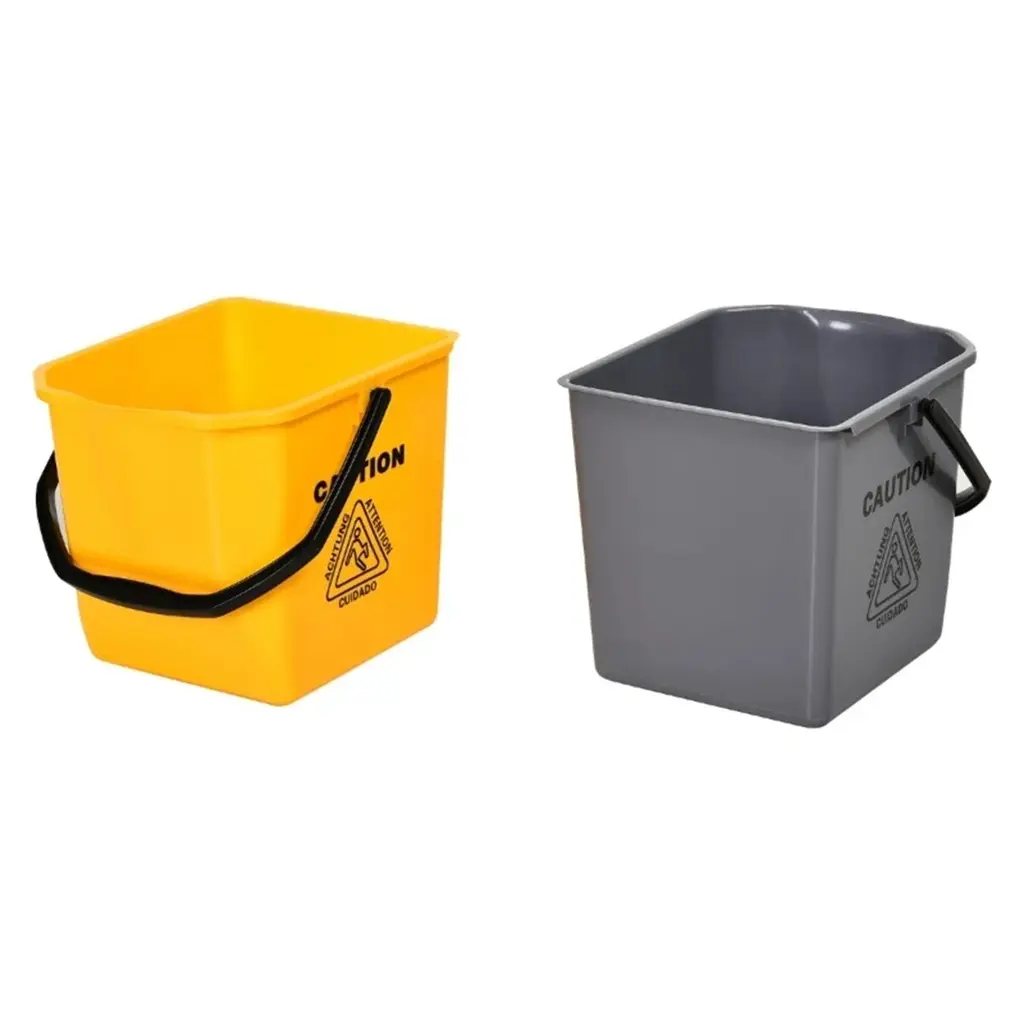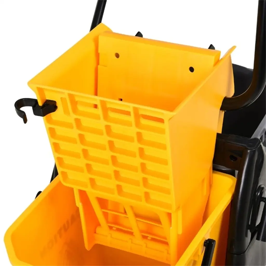 Plastic 55 Quart Cleaning Bucket With Dual Buckets And Water Separation Design - 30.75" L X 17.75" W X 37.5" H - Yellow/grey/black