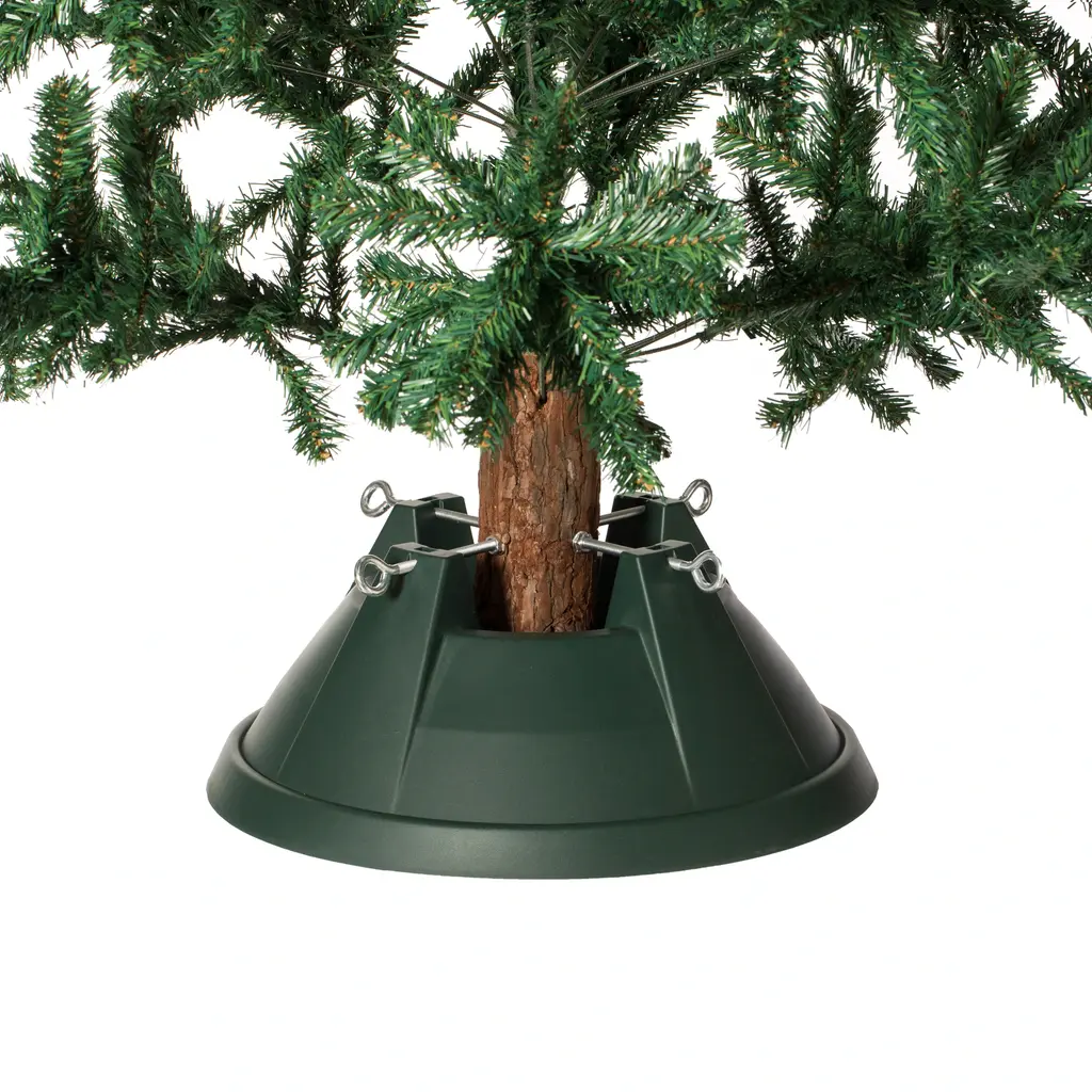 This tree stand is perfect to hold your Christmas tree. stand is very easy to use just put in the tree and adjust the metal eye bolts that provide a stable contact between stand and tree. Holds up to 1.5 gallons of water. Green finish will add to your holiday decorations.