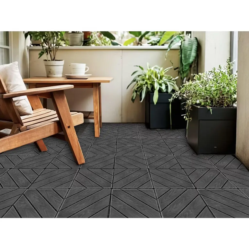 [Sturdy & Tough Tiles]: Plastic interlocking deck tiles are made from premium quality, high-hardness plastic material. Durable and resistant to deformation, can withstand direct sunlight, rainstorm and snowstorm, which fits for being used all year round. Compared to wood deck tiles, it has better waterproofing, wear resistance and corrosion resistance.