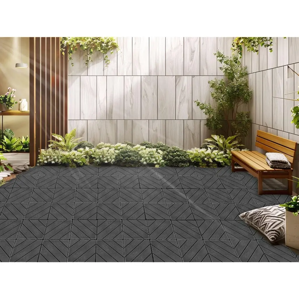 Plastic Composite Deck Tiles Set Of 35pcs, Composite Decking Resist Rust, Water, Weather, Easy To Diy & Maintain
