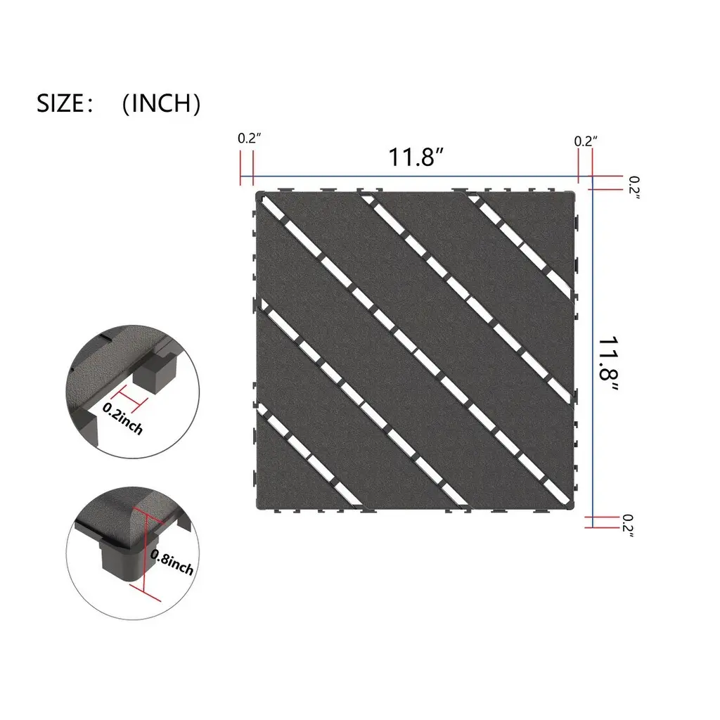 Plastic Interlocking Deck Tiles,44 Pack Patio Deck Tiles,12"x12" Square Waterproof Outdoor All Weather Use, Patio Decking Tiles for Poolside Balcony Backyard.Features: Description: Specification: