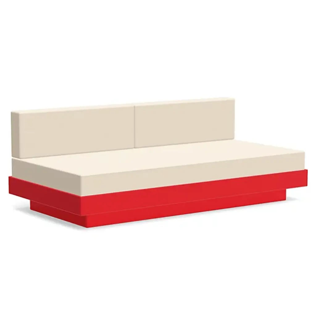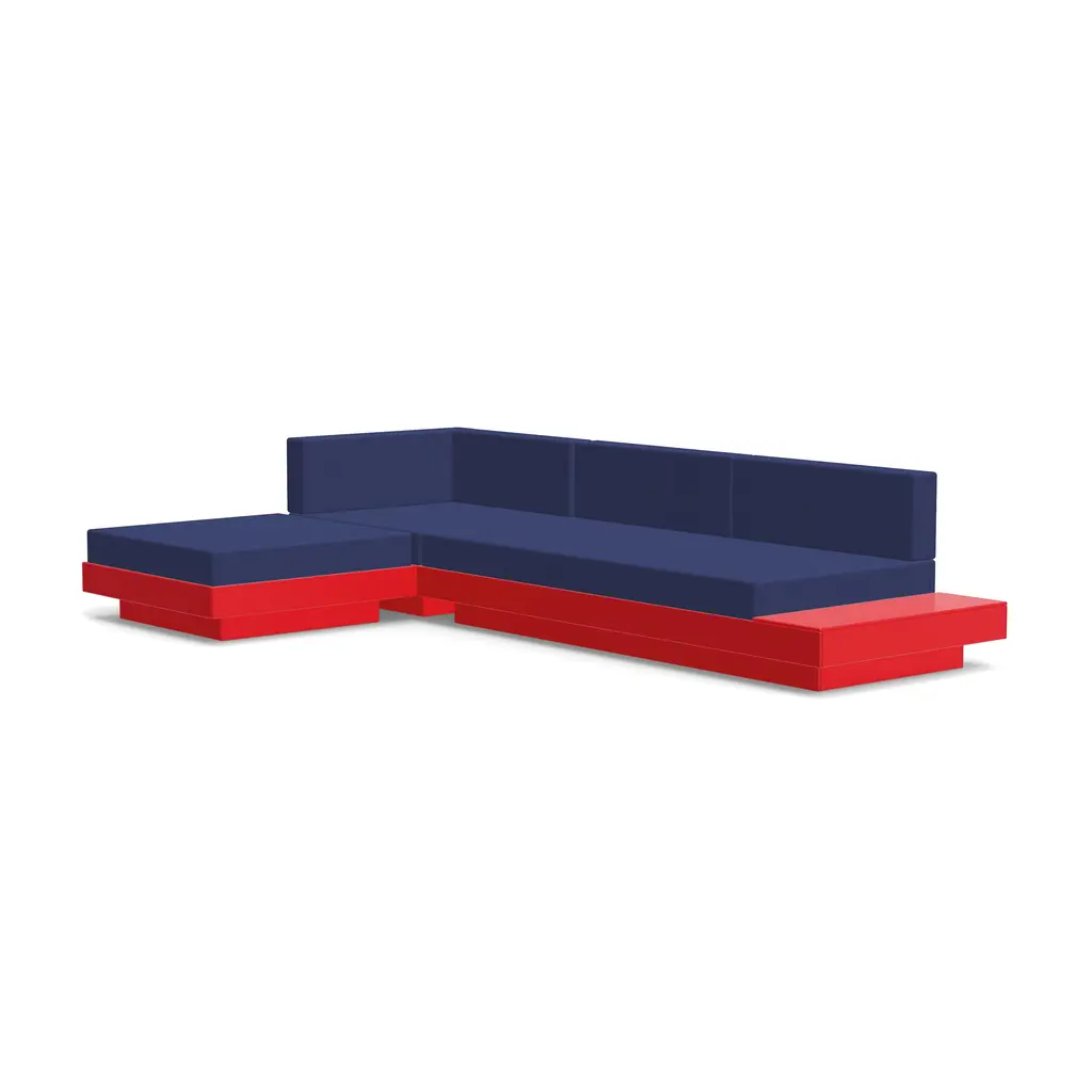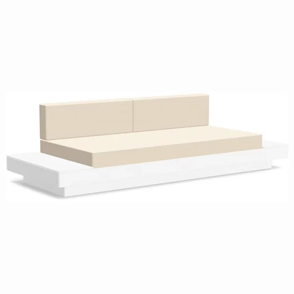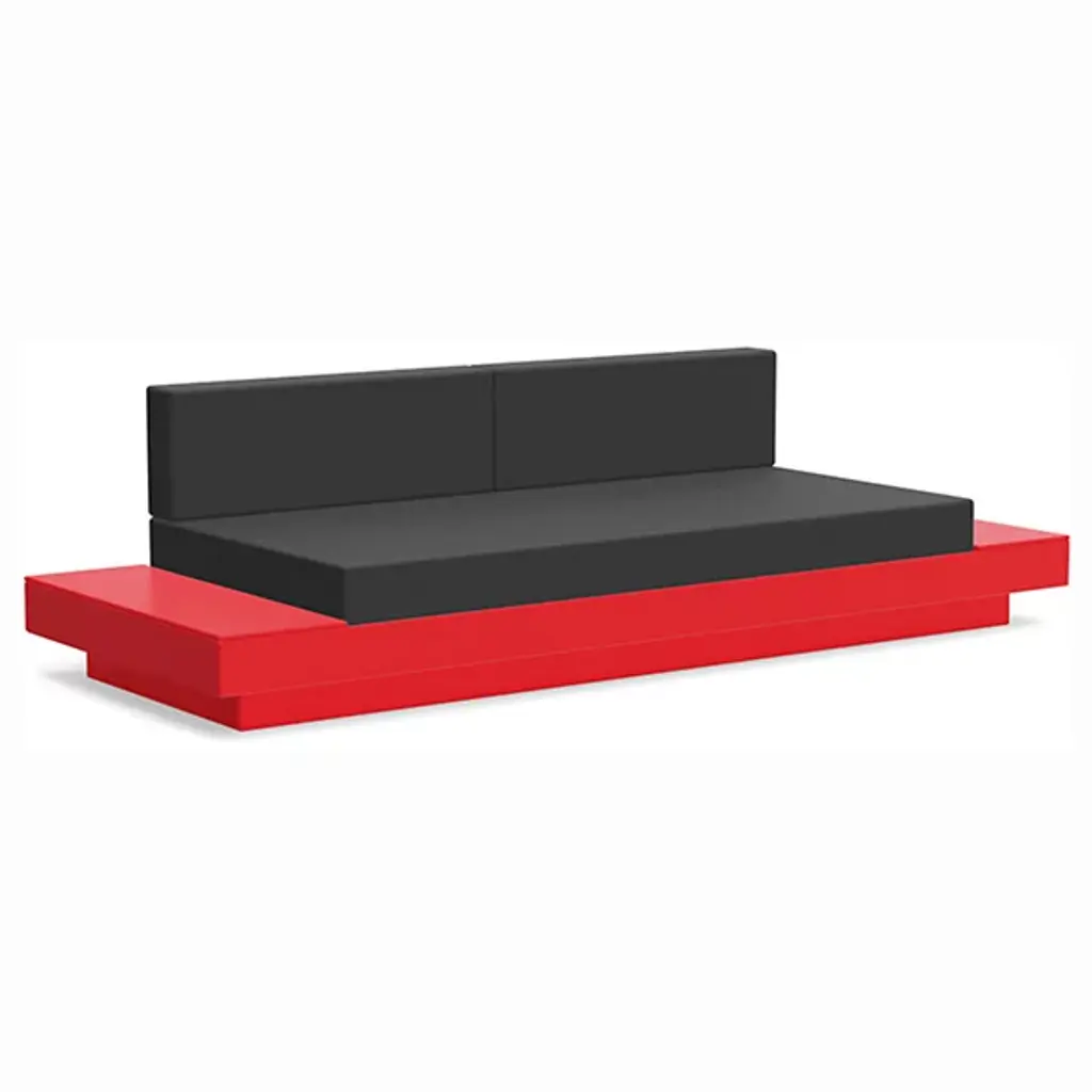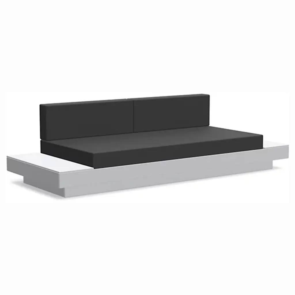 The Platform One Sofa With Tables by Loll Designs brings a modern touch to your lounge areas. Flanked with simple, functional, and convenient side tables, this sofa is the perfect space to sink in and relax with a drink or a snack. The easy to clean and durable Sunbrella cushions are fit into an intentionally deep seating arrangement that is a comfortable complement to the structured base. This base is made from recycled milk jugs and non-recycled HDPE and powder-coated steel uprights and is a durable and eco-conscious combination that will allow this outdoor set-up to last.