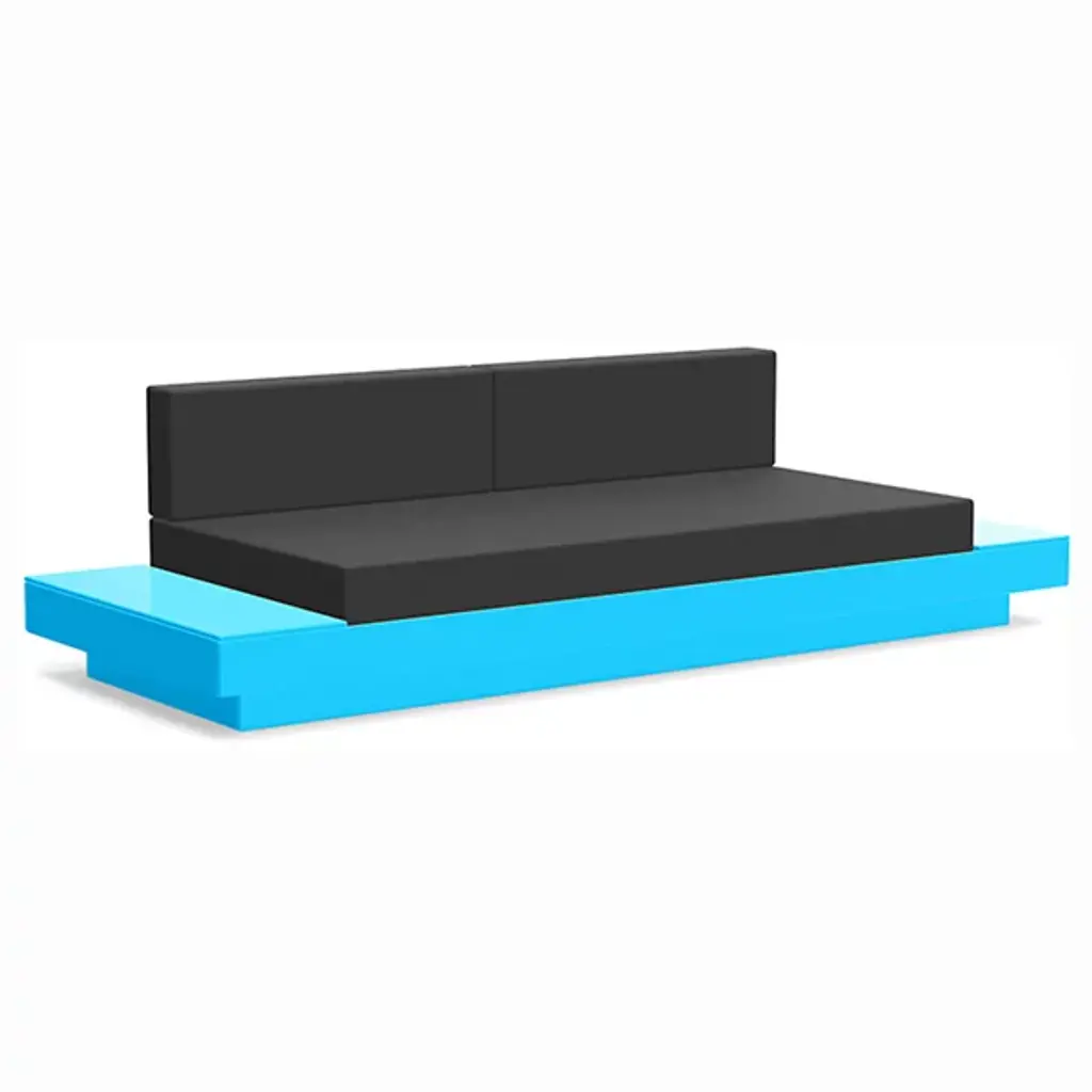 The Platform One Sofa With Tables by Loll Designs brings a modern touch to your lounge areas. Flanked with simple, functional, and convenient side tables, this sofa is the perfect space to sink in and relax with a drink or a snack. The easy to clean and durable Sunbrella cushions are fit into an intentionally deep seating arrangement that is a comfortable complement to the structured base. This base is made from recycled milk jugs and non-recycled HDPE and powder-coated steel uprights and is a durable and eco-conscious combination that will allow this outdoor set-up to last.