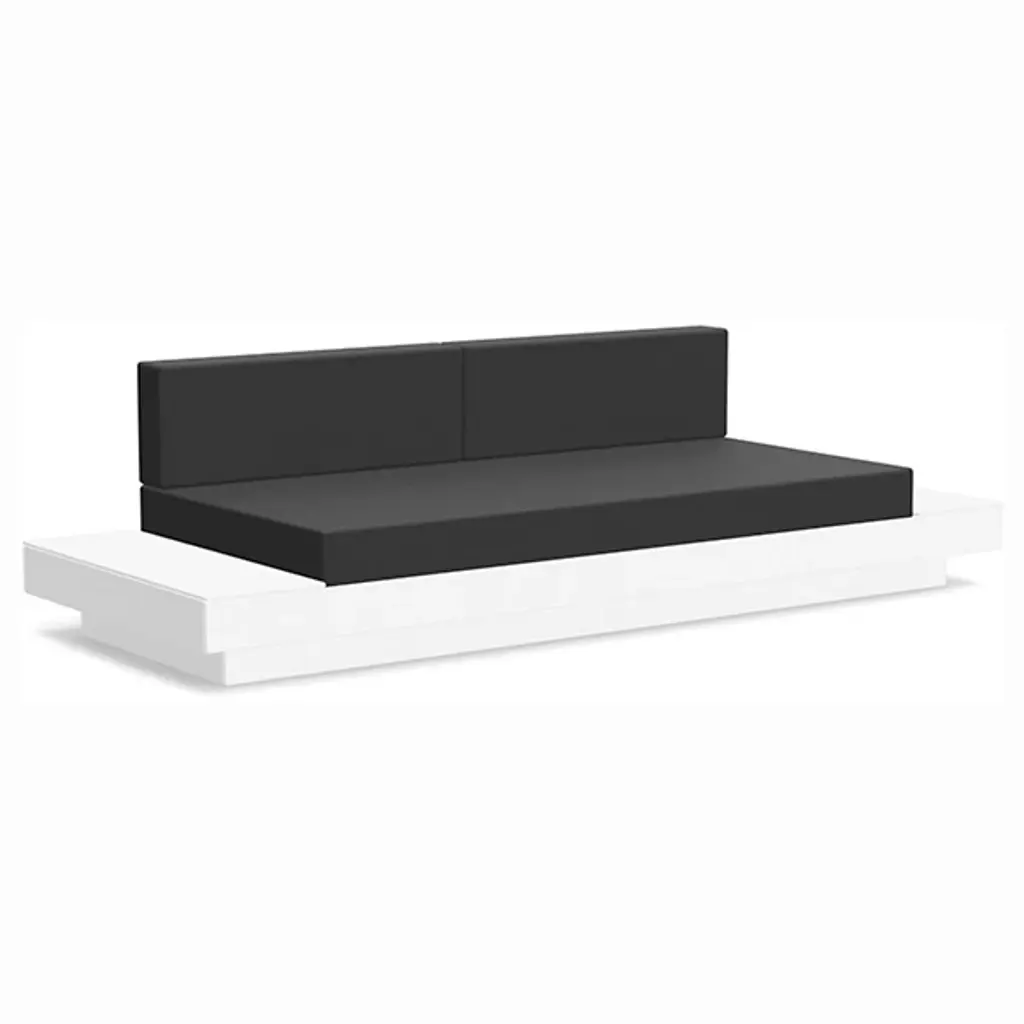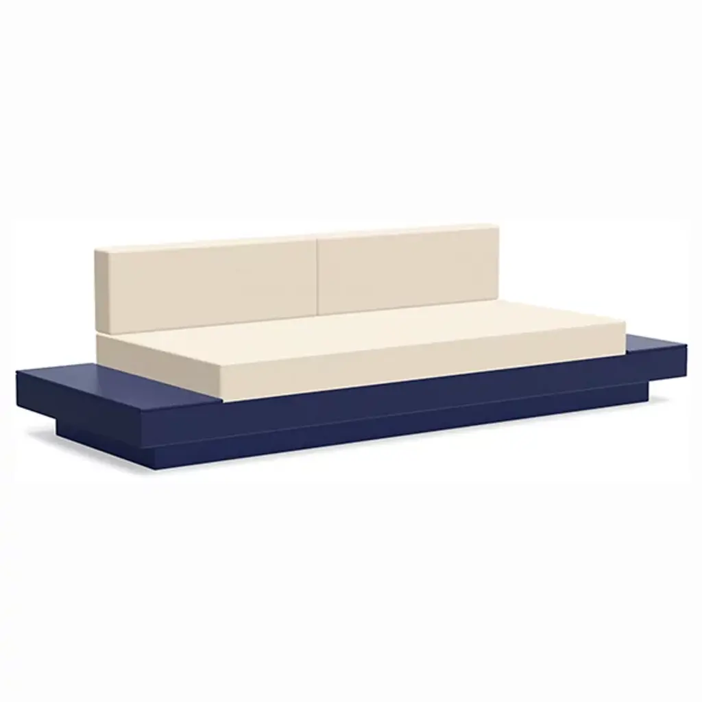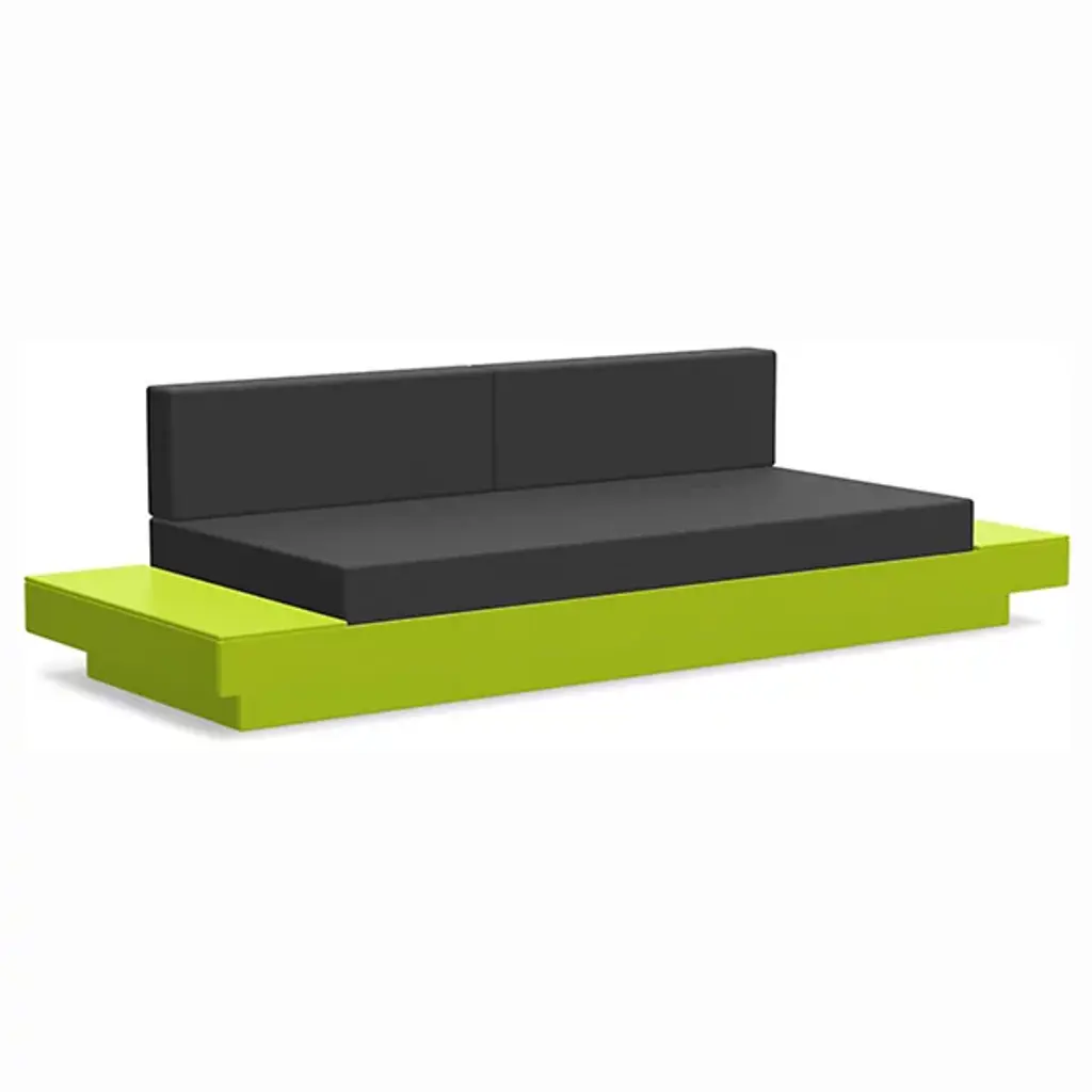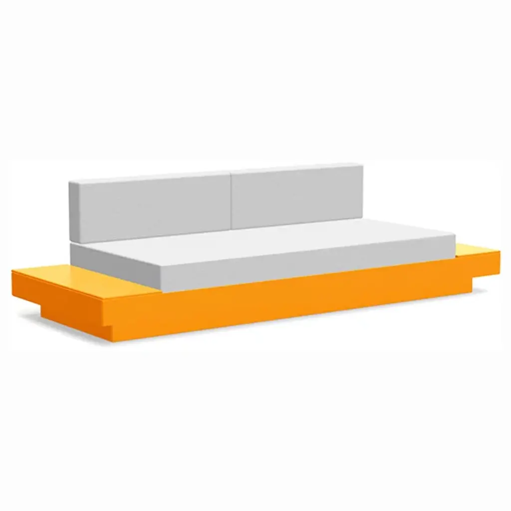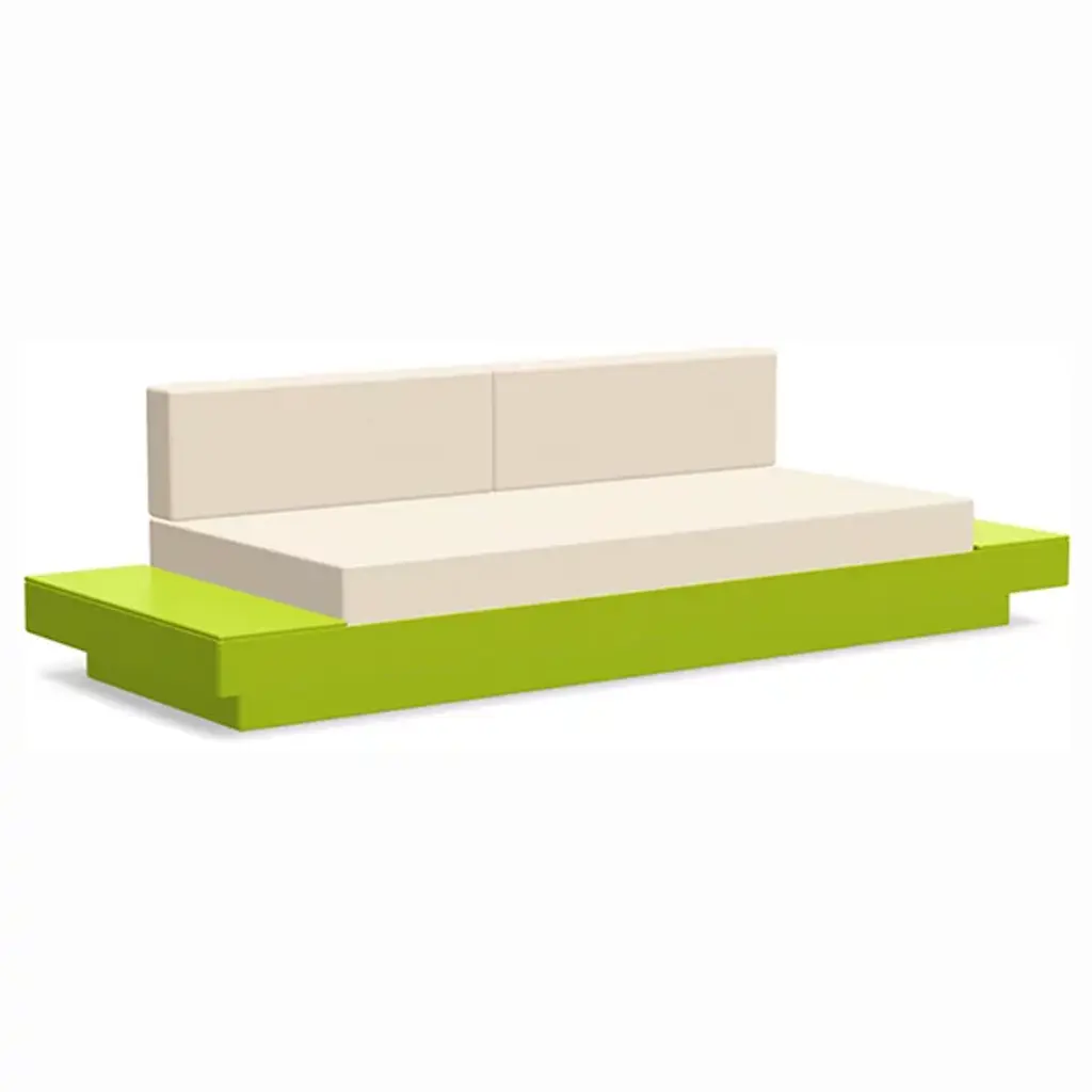 The Platform One Sofa With Tables by Loll Designs brings a modern touch to your lounge areas. Flanked with simple, functional, and convenient side tables, this sofa is the perfect space to sink in and relax with a drink or a snack. The easy to clean and durable Sunbrella cushions are fit into an intentionally deep seating arrangement that is a comfortable complement to the structured base. This base is made from recycled milk jugs and non-recycled HDPE and powder-coated steel uprights and is a durable and eco-conscious combination that will allow this outdoor set-up to last.