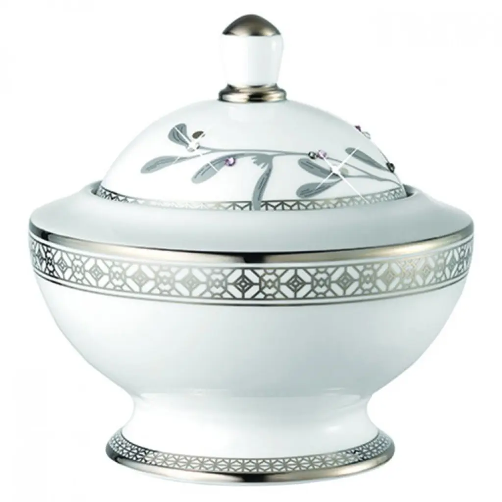 Platinum Edge Covered Sugar With Rose 6 Oz 4 In H
