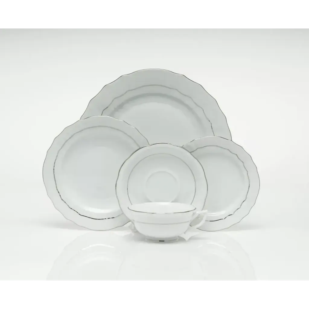 A rich, elegant style, the traditional Golden Edge design of the early twentieth century is updated here in platinum. Hand painted in Hungary. Now the biggest porcelain manufactory in Europe, Herend was founded in 1826 to produce earthenware in the small Hungarian village for which it was named. At the time, Hungary was flooded with low-cost pottery, but in 1839, Mor Fischer became the Manufactory’s new owner and he decided to focus on producing dinnerware replacement pieces for Europe’s royal families to complement their valuable porcelain patterns from Germany and the Far East. As his client base grew, Fischer commissioned his artists to begin designing dinnerware patterns of their own. Queen Victoria’s 1851 purchase of a large set for Windsor Castle was a milestone, setting the stage for aristocrats throughout Europe to clamor for Herend in their estates. In the 1850s, Herend added meticulously-crafted figurines to its creations. Herend’s trademark fishnet pattern, which is widely recognized and prized as Herend’s signature design, started in 1858 when an artist who was intrigued with a Chinese plate’s fish scale design painted it onto a rooster figurine to imitate feathers.