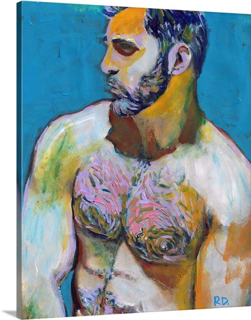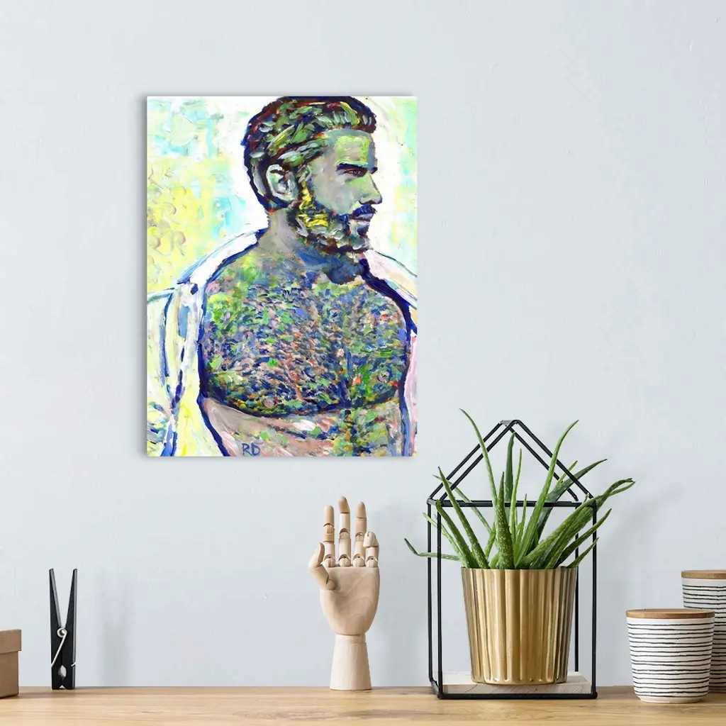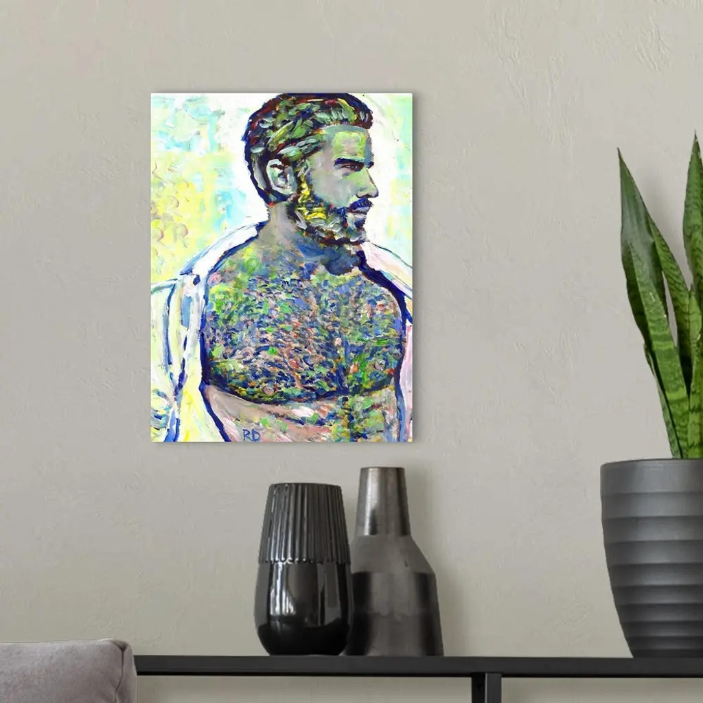 Platinum Man sexy male nude portrait by RD Riccoboni in greens, grey, silver and blue.
