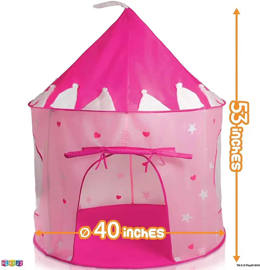 Play Tent Princess Pink Castle Glowing In The Dark Stars - Portable Kids Play Tent Fordable Into A Carrying Bag For Outdoor And Indoor Use - Play22usa