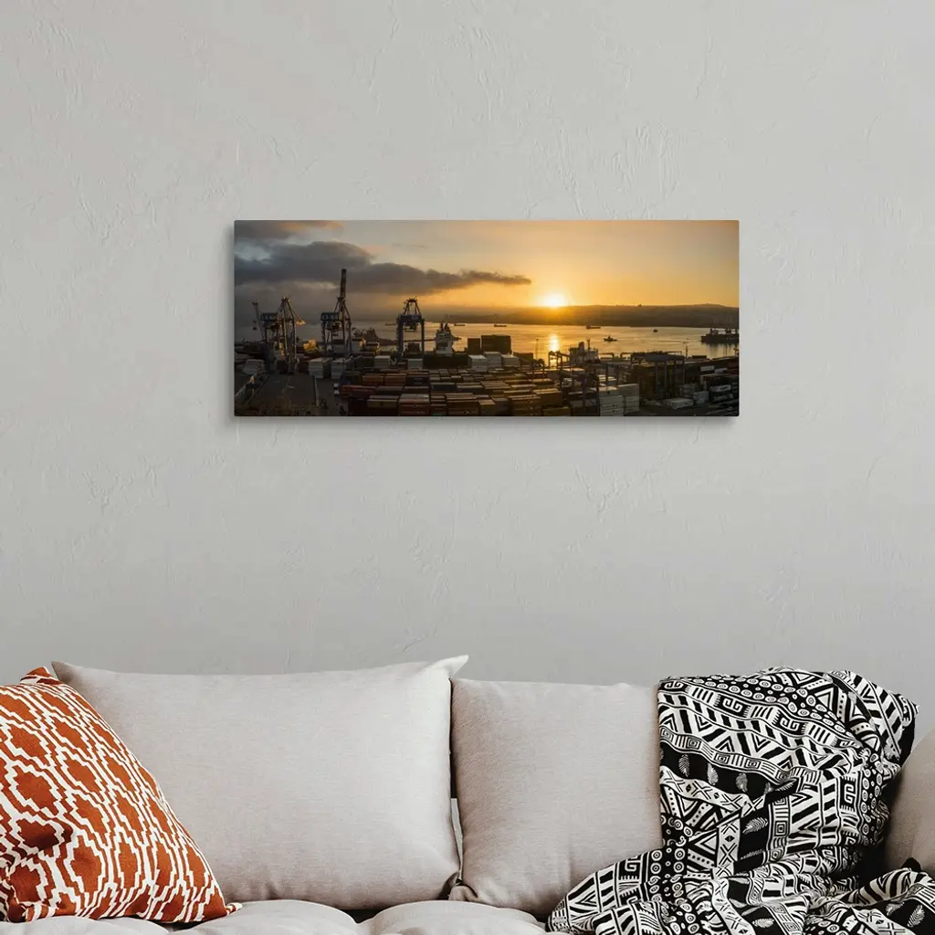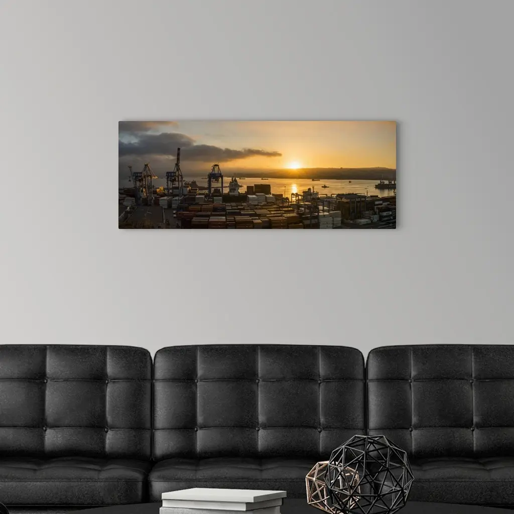 View of city and ports at dawn from Paseo 21 de Mayo, Playa Ancha, Valparai?so, Central Coast, Chile.�