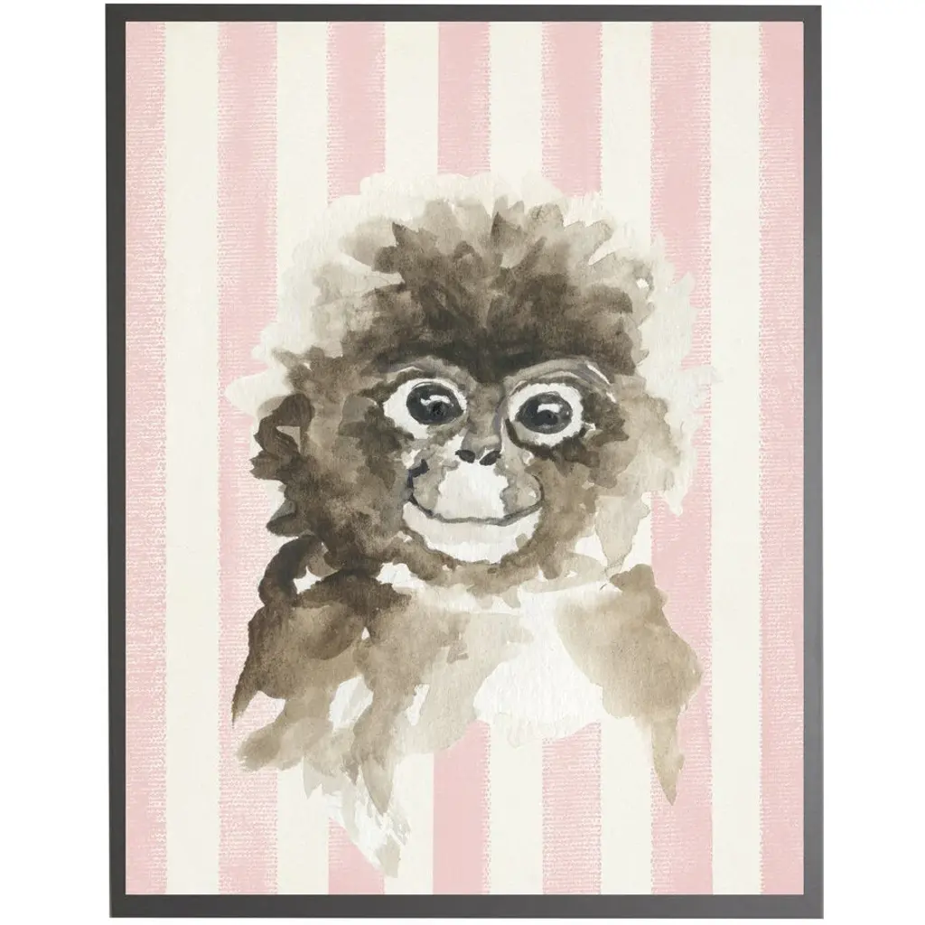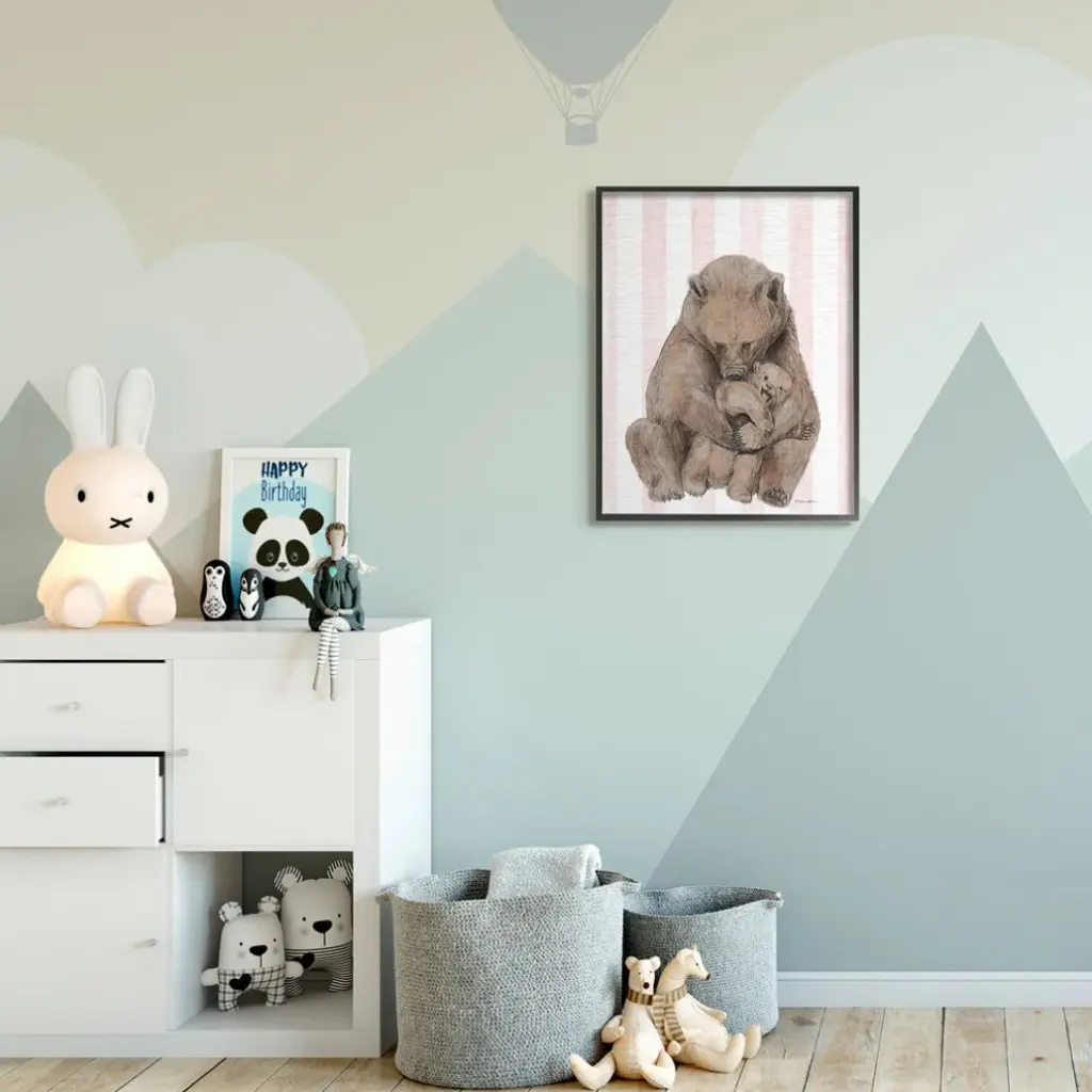 Playful Mother Bear And Cub Pink Stripe Nursery Illustration,1pc, Each 24 X 30