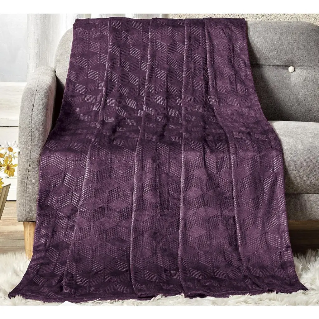 Plazatex Amrani Bedcover Embossed Blanket, Soft Premium Microplush, Queen, Plum