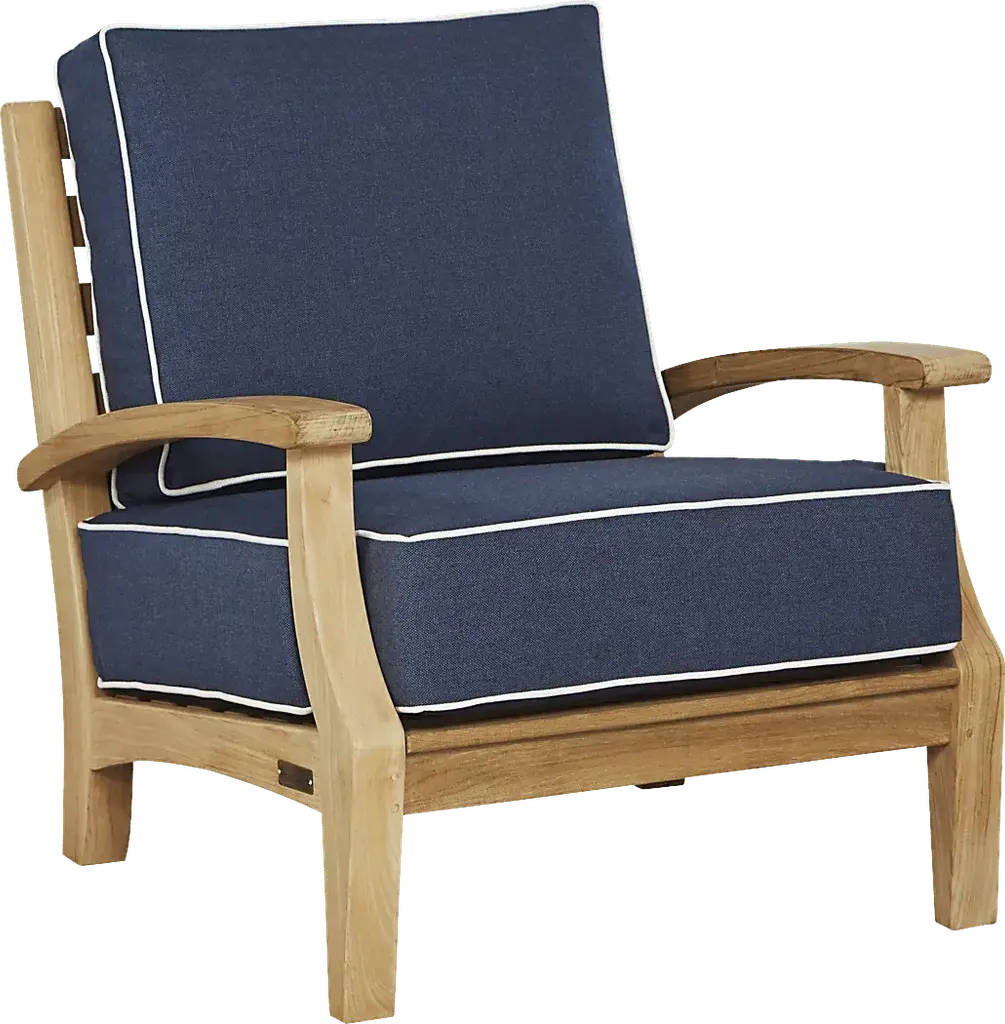 Pleasant Bay Teak 3 Pc Outdoor Seating Set With Indigo Cushions