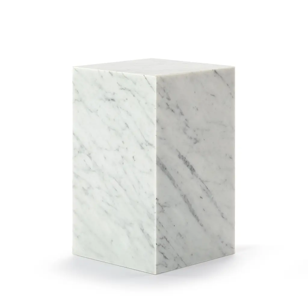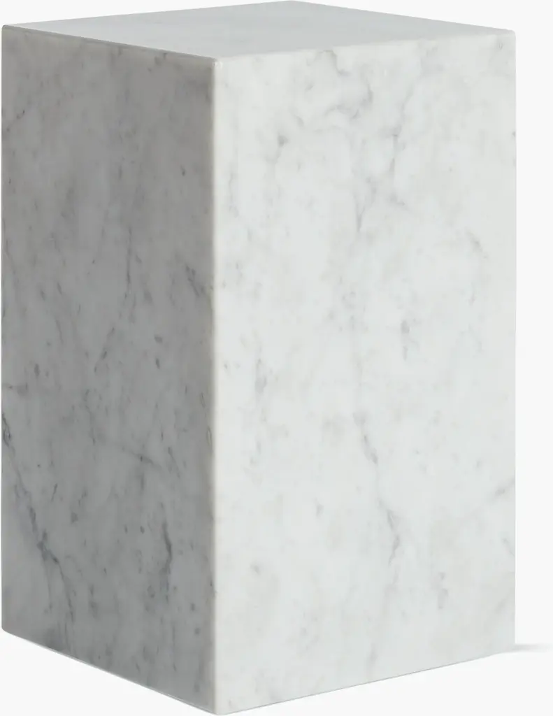 With the Plinth Side Table (2017), Norm Architects wanted to rethink the centuries-old idea of a podium and celebrate the natural beauty of marble. Expert stone masters carefully select marble with the best composition and veining for Plinth Tables - each of which has unique markings that make it one of a kind. The result is a collection with multiple uses in the home, office, or showroom. These tables are hollow to make them easier to move but, due to the thickness of the marble, they're still satisfyingly hefty, weighing in at 89 pounds for the Tall Side Table and 95 pounds for the Standard Side Table. Made in China.