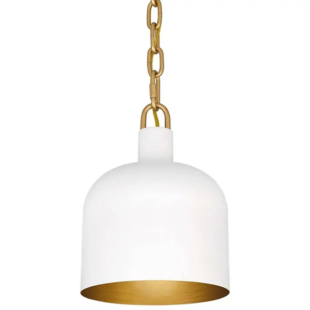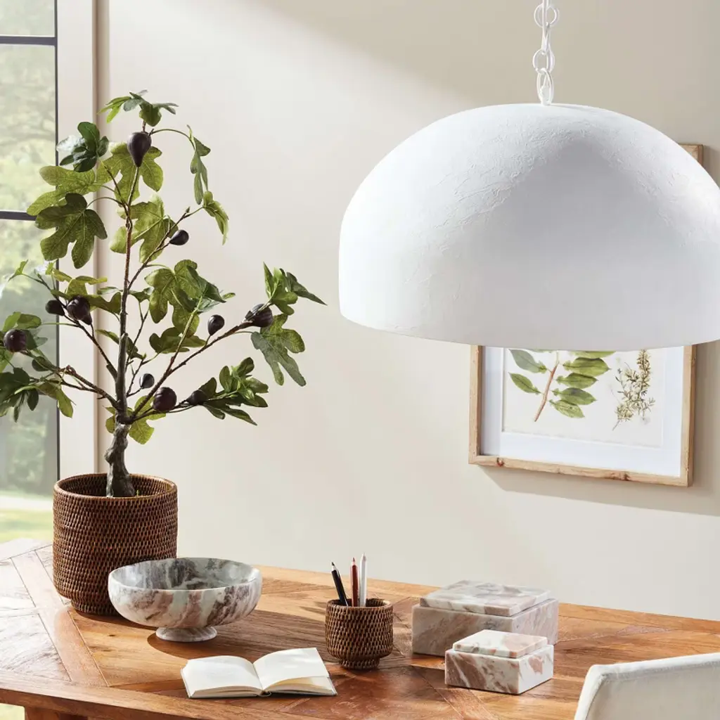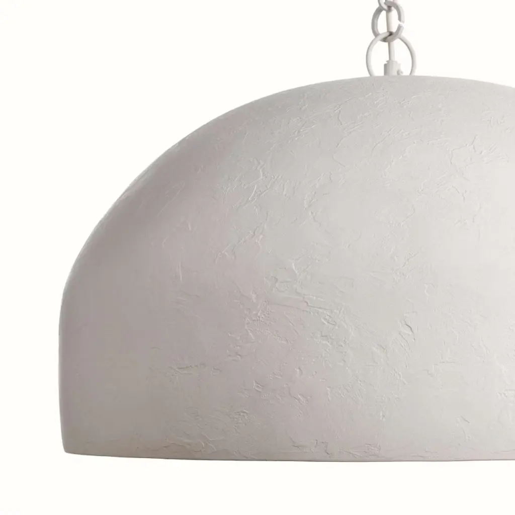 A modern statement-worthy pendant with a lightly pounded textured metal dome shade. Finished in an on-trend matte white, this pendant is at home in the contemporary setting.