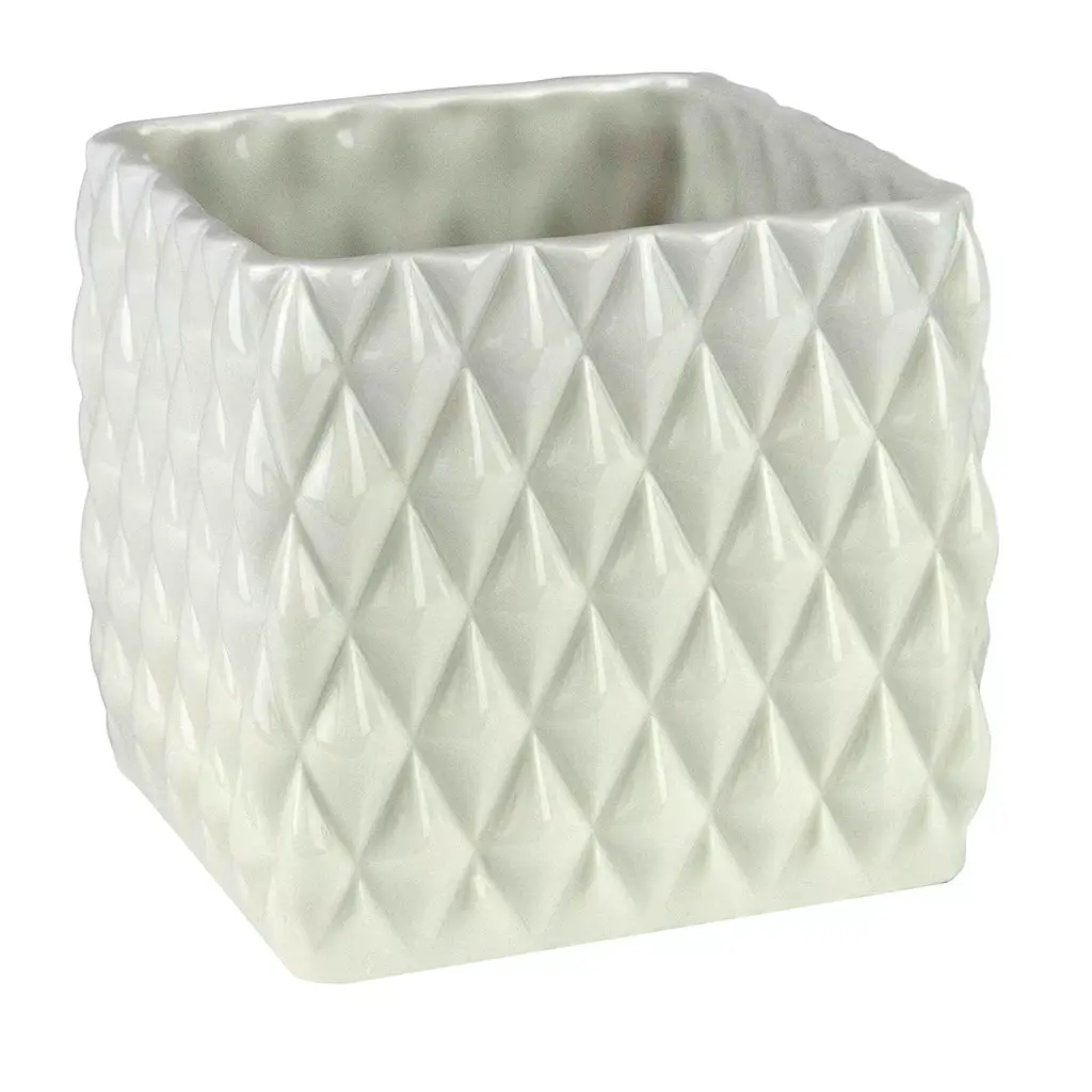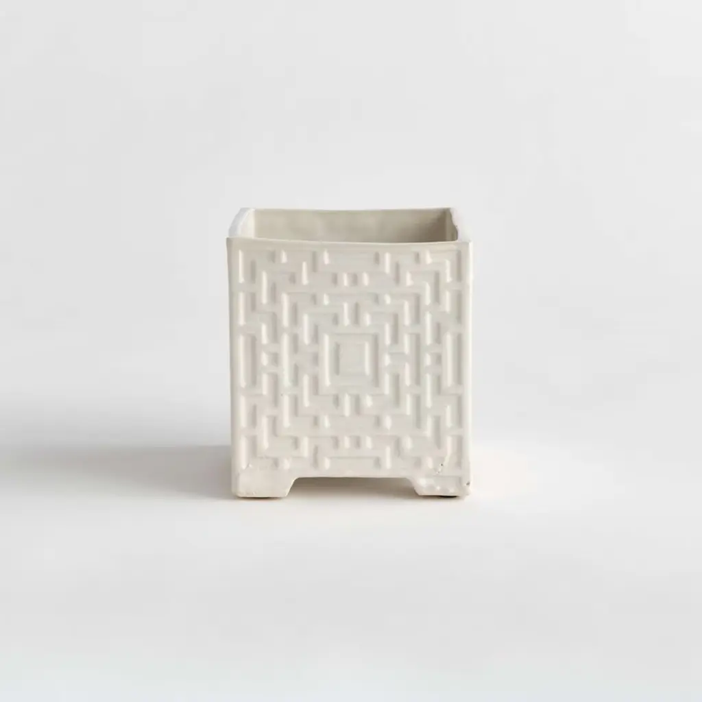 This clean, white cachepot is made in traditional style. With unmistakable chinoiserie-inspired lattice details, it is sure to be an instant classic.