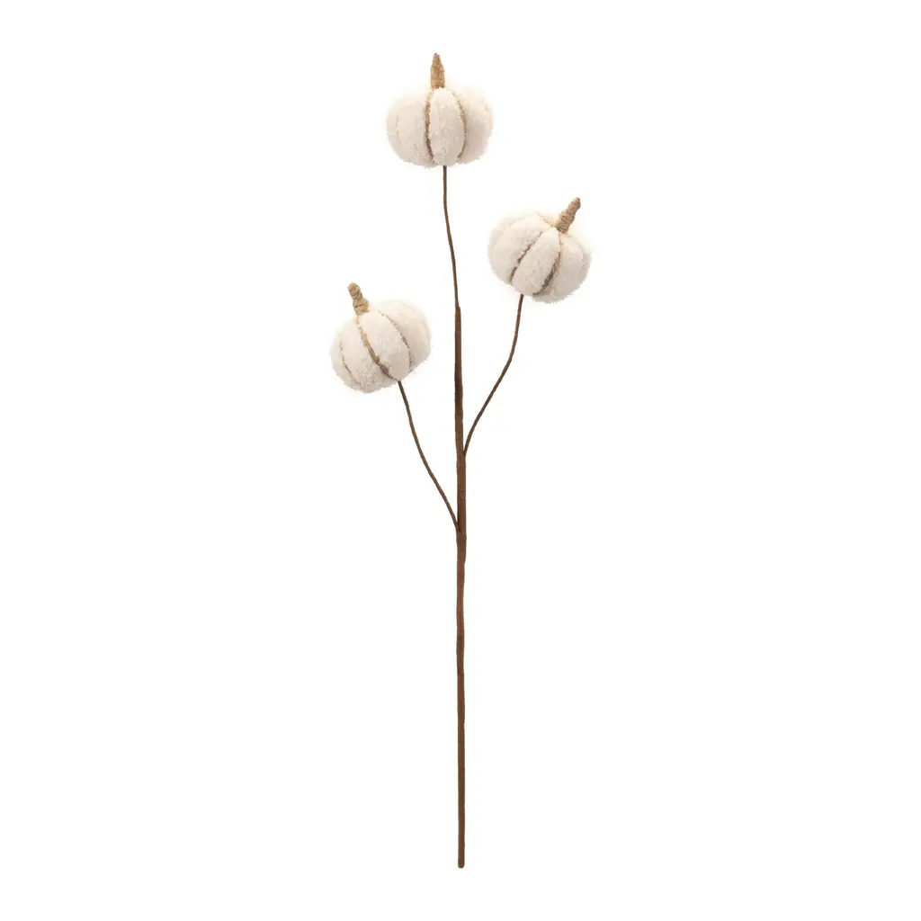 Bring the cozy charm of fall into your home with our Plush Fall Pumpkin Spray. Featuring soft beige tones and a playful pumpkin design, each spray is crafted with a fabric finish for a realistic, yet charming look. With wired stems and branches, these sprays offer sturdy displays and versatile use. Sold in a set of six matching pieces, they can be easily added to a tabletop or floor vase with a maple leaf spray, or woven into a harvest wreath or garland to elevate your seasonal décor.