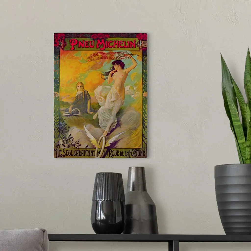 PER320966 Poster advertising for Michelin 'Pneu Michelin, le seul s'adaptant a la roue de la fortune' (colour litho) by French School, (19th century); Private Collection; (add.info.: publicite; pneus; allegorie;); French, out of copyright