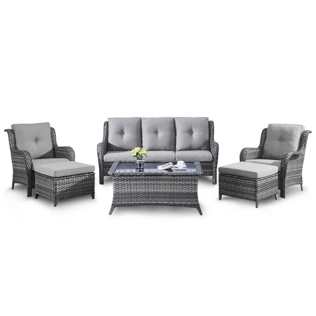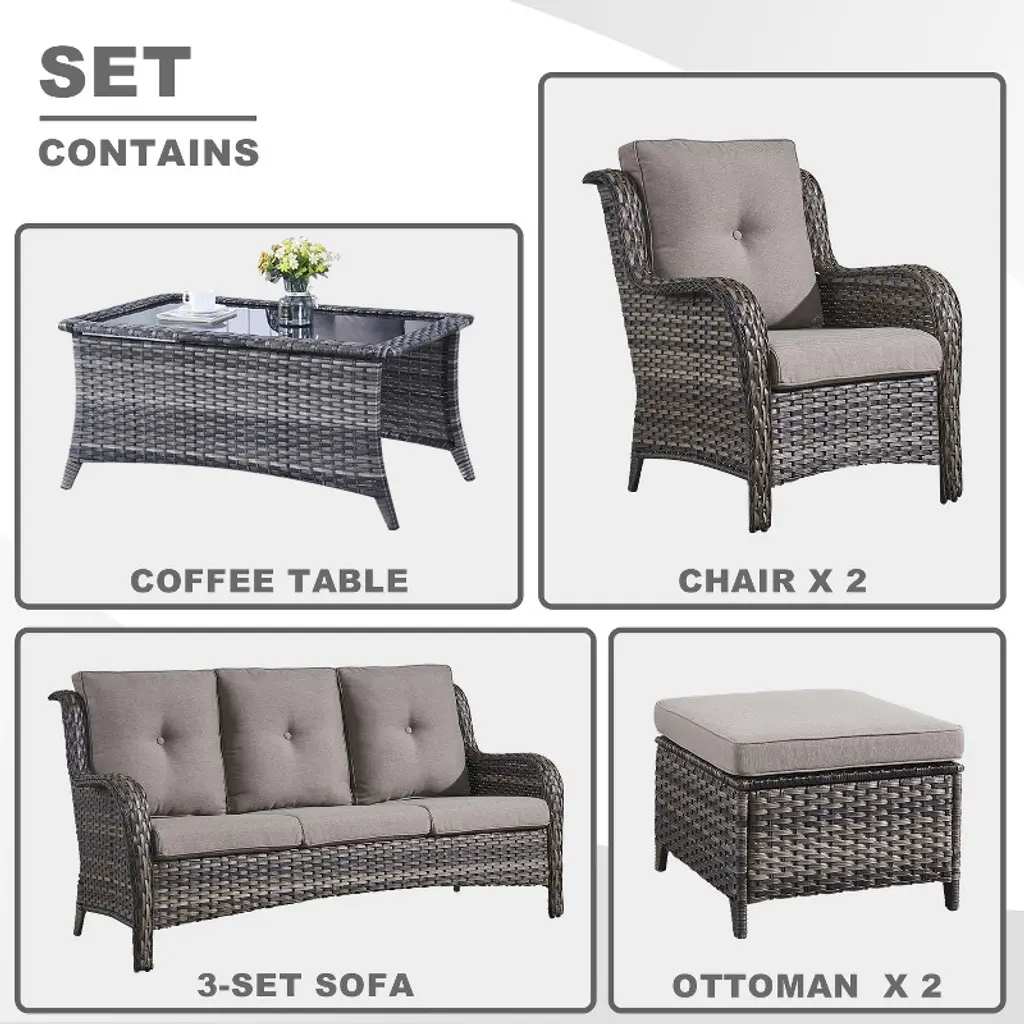 Pocassy 6Pcs Patio Furniture Set With Coffee Table, All Weather Wicker Outdoor Conversation Set Patio Sofa Couch Set With Patio Chairs And Ottomans