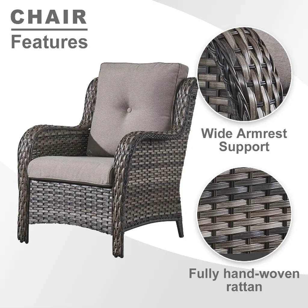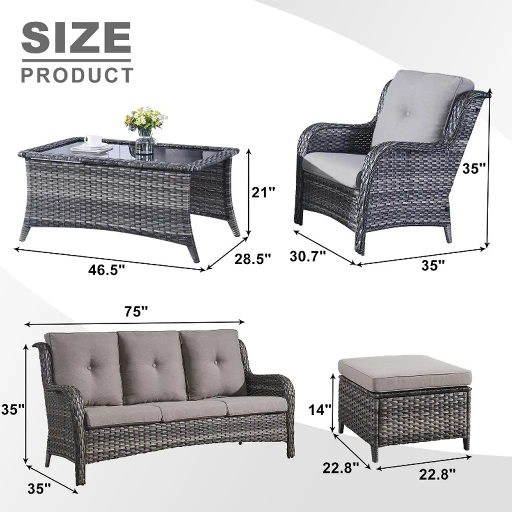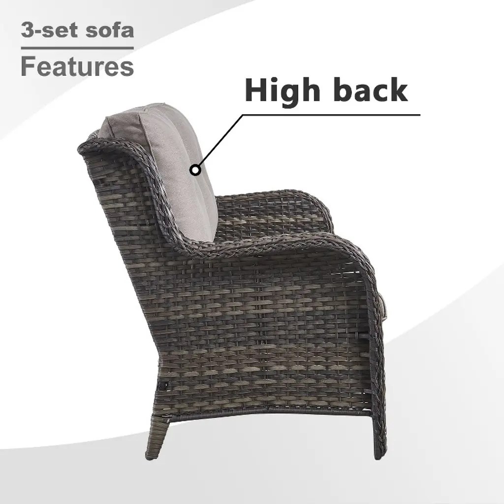 Seize the moment and upgrade your outdoor space before your next party or gathering with these all-weather wicker lounge furniture sets with cushions. Relax and make better use of your backyard or porch with this wicker patio sofa and chair set with cushions in a variety of inviting color schemes sure to match your current patio furniture, creating a comfortable, luxurious atmosphere that accentuates the romance of elegance and creates a seamless transition between indoor and outdoor living. The comfortable back cushions and cushioned all-over package will make you feel very comfortable and will dissipate your fatigue. This furniture set is paired with a matching table capable of holding books tea cups and more to make your outdoor life more enjoyable.