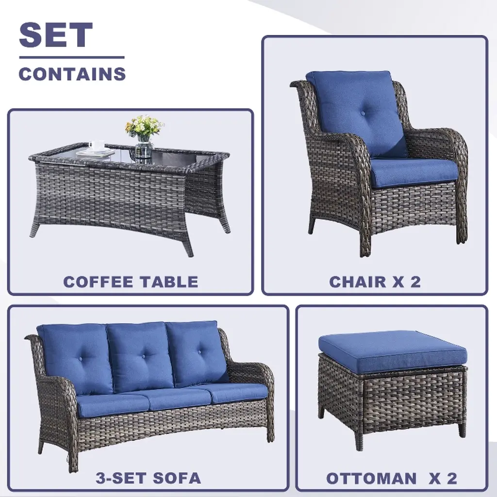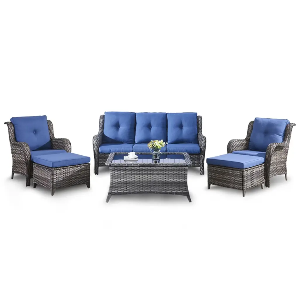 Pocassy 6Pcs Patio Furniture Set With Coffee Table, All Weather Wicker Outdoor Conversation Set Patio Sofa Couch Set With Patio Chairs And Ottomans