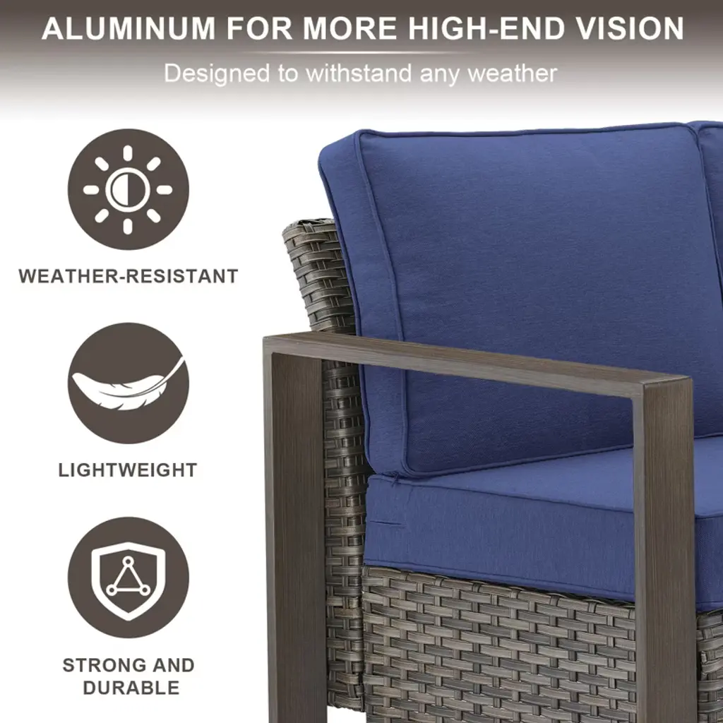 Elevate your outdoor living space with the stylish POCASSY Outdoor Rattan Sofa, a perfect blend of durability and modern design. Featuring a sturdy iron frame armrest that adds industrial charm and long-lasting strength, this sofa is crafted from high-quality rattan material, exuding natural elegance while ensuring exceptional support and stability. The soft, water-resistant Olefin cushions provide ultimate comfort and are easy to maintain, making this sofa ideal for any outdoor setting. With its ergonomic design and spacious seating area, it!-s perfect for both relaxation and social gatherings, creating a cozy and inviting atmosphere. Transform your patio, garden, or poolside into a captivating oasis of style and comfort with this versatile rattan sofa, where modern aesthetics meet practical functionality for an unforgettable outdoor experience.