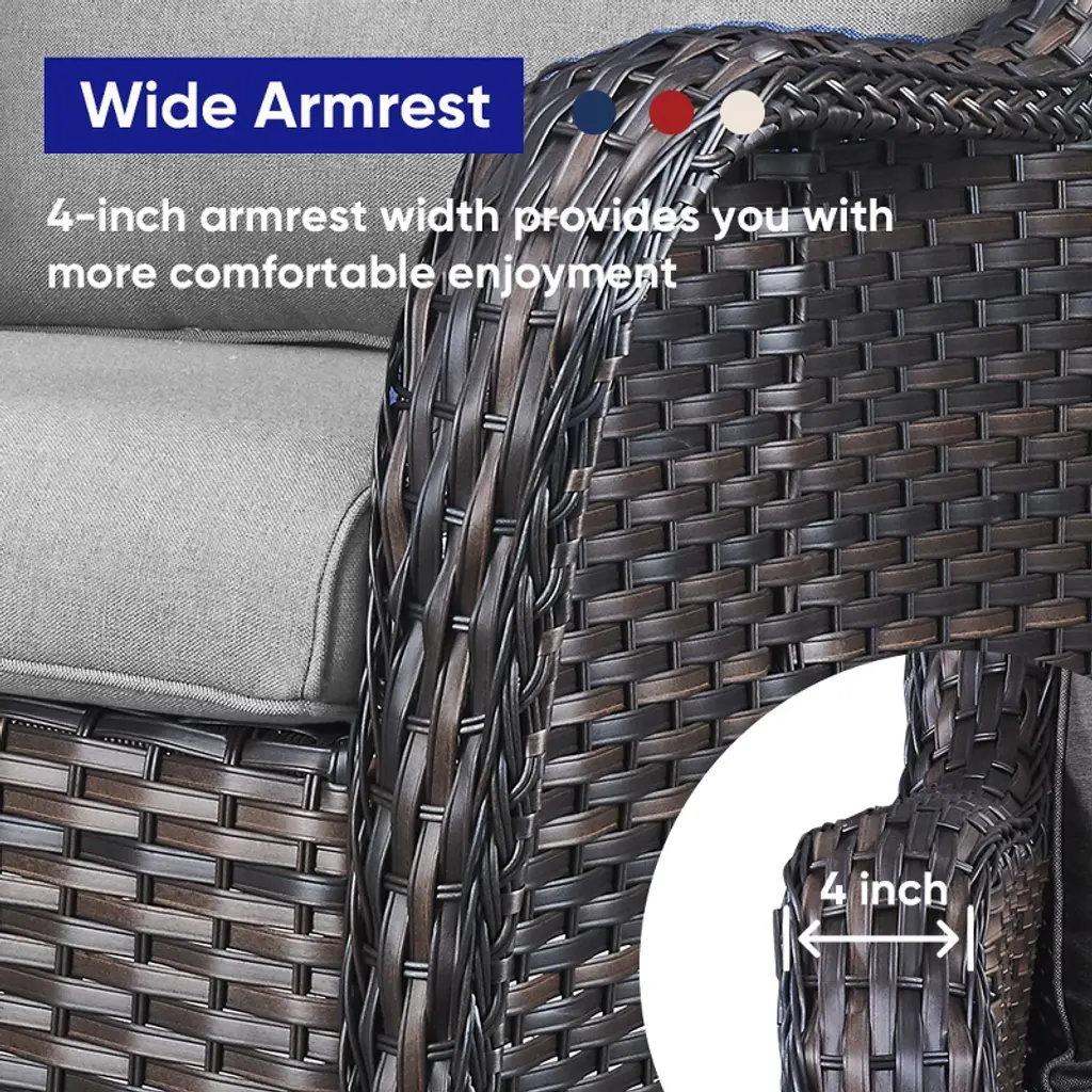 Elevate the beauty and comfort of your outdoor living space with the exquisitely crafted POCASSY Outdoor Patio Woven Brown Rattan Sofa, designed to deliver a luxurious seating experience that seamlessly blends style, durability, and unparalleled relaxation. Featuring plush 3.5-inch thick seat cushions for ultimate comfort and premium hand-woven PE wicker for lasting resilience, this elegant three-seat sofa is the perfect addition to your patio, garden, or poolside, transforming any outdoor area into a sophisticated retreat for relaxation and entertainment.