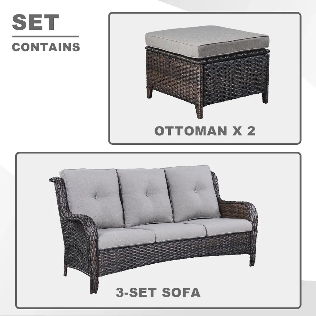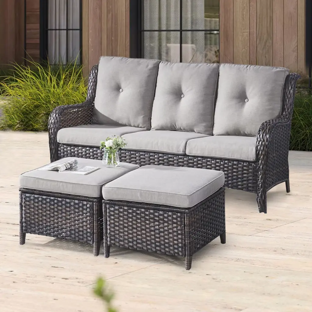 This patio sofa set is elegant and spacious, improving your life taste, a comfortable and luxurious atmosphere, elegant and romantic. For green life, our outdoor furniture set is your good choice.