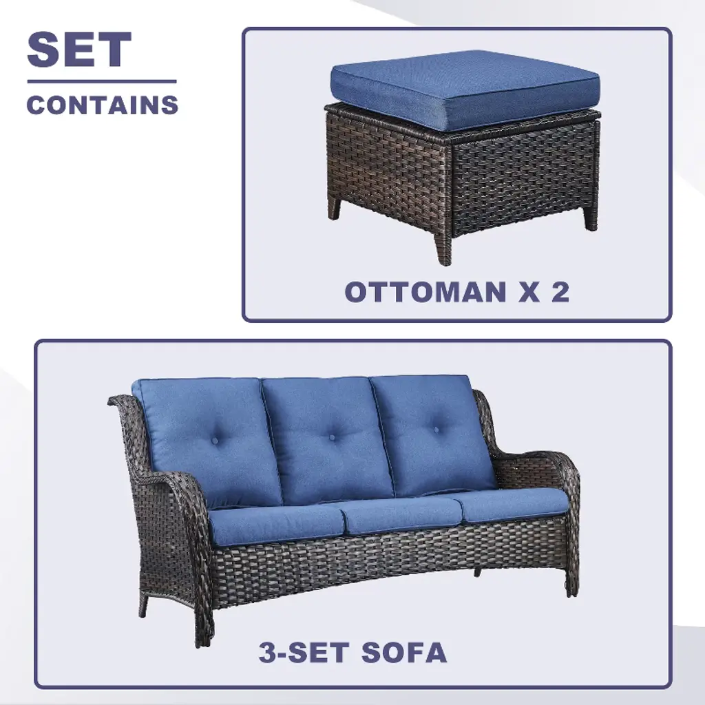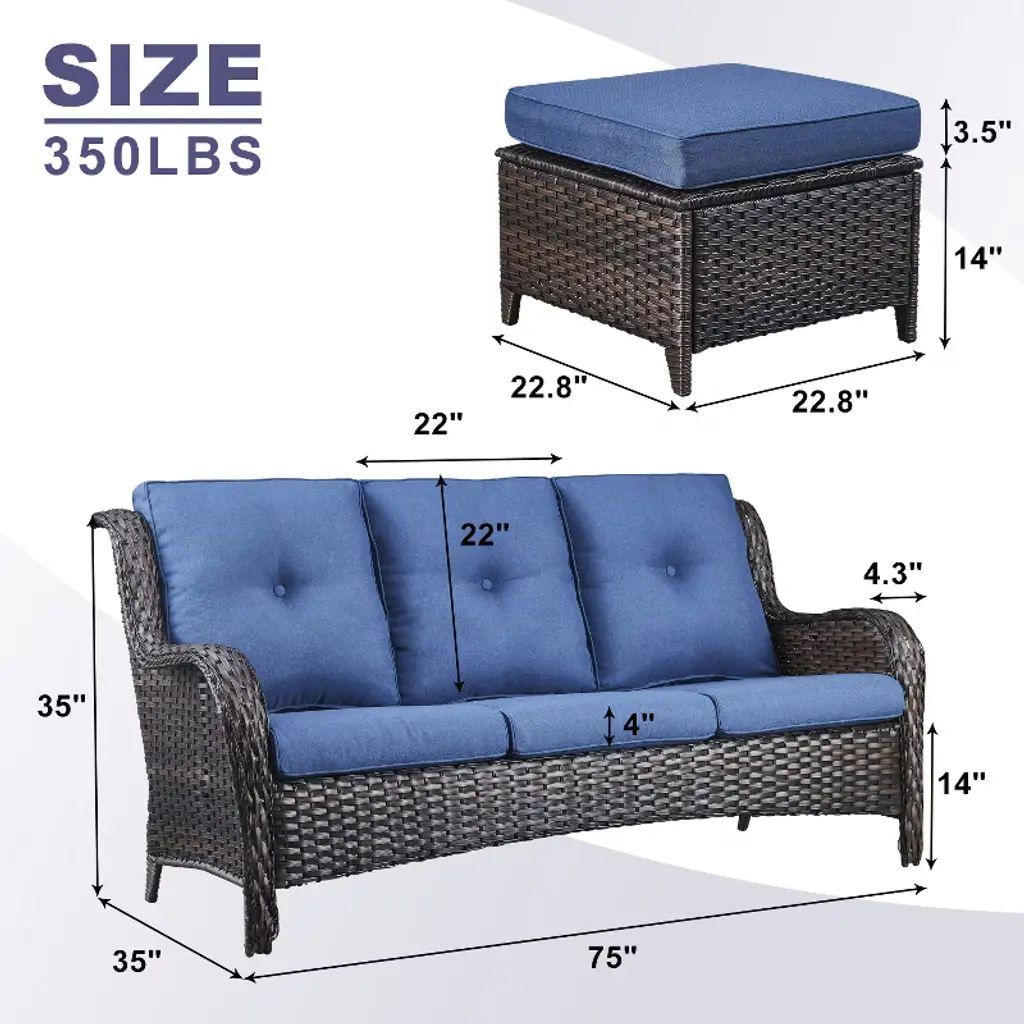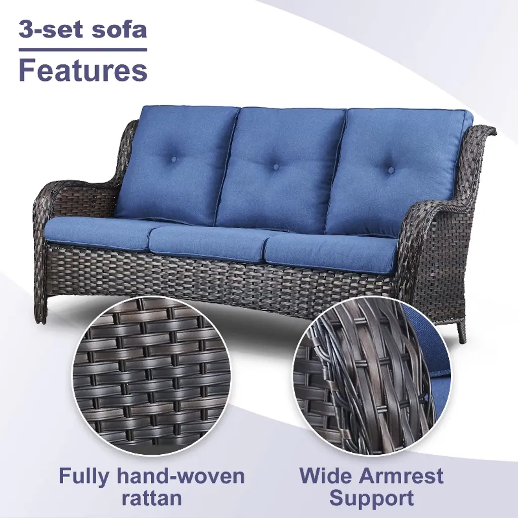 This patio sofa set is elegant and spacious, improving your life taste, a comfortable and luxurious atmosphere, elegant and romantic. For green life, our outdoor furniture set is your good choice.