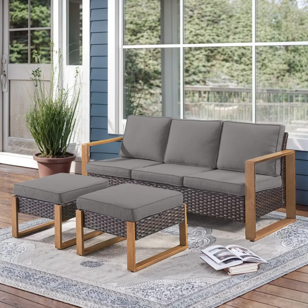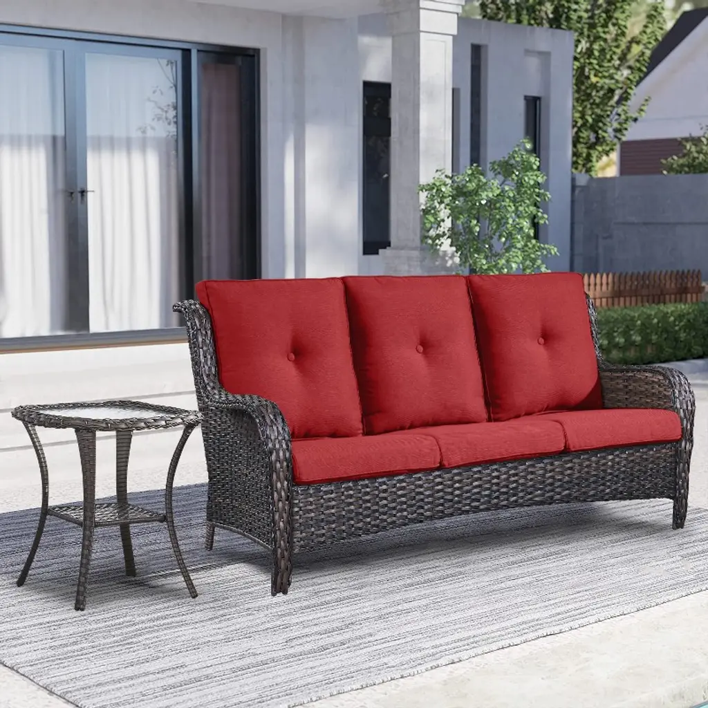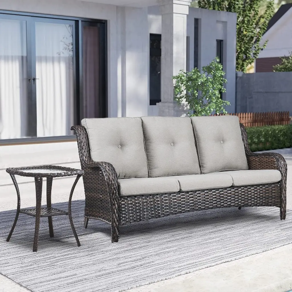 Pocassy 75" Wide Outdoor Patio Sofa With Cushions And Side Table