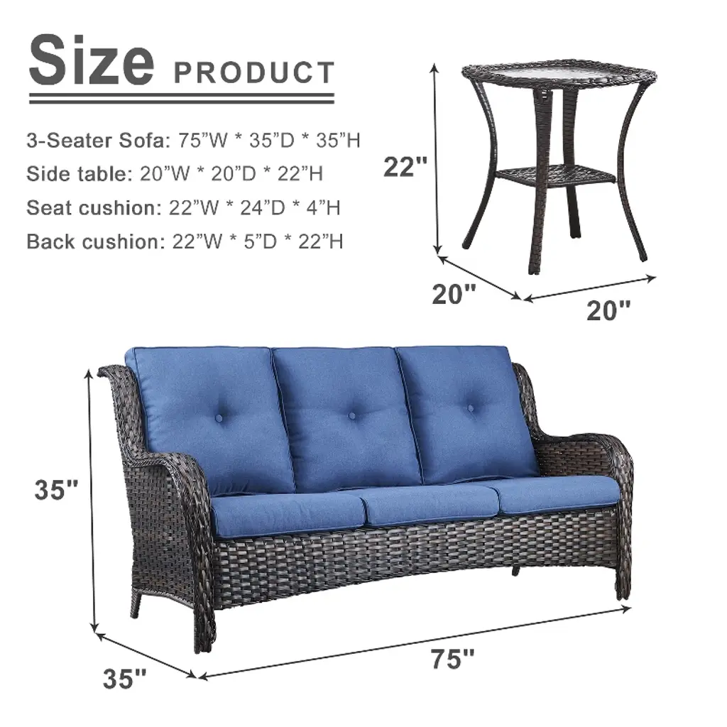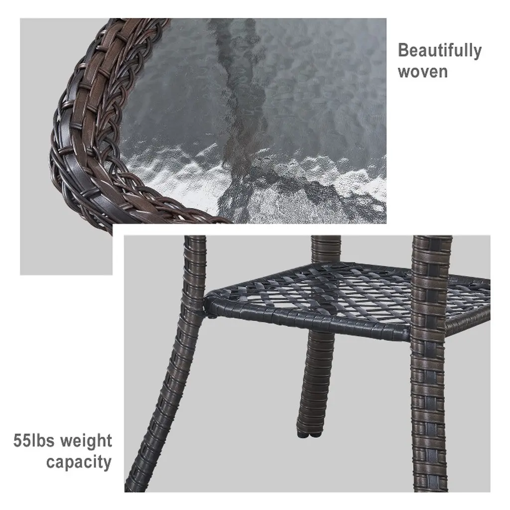 Elegant, casual style that doesn't compromise on comfort and durability - that's the design philosophy behind our products. The inner frame is made of powder coated aluminum, which is resistant to rust, UV rays and mildew, and the outer layer is wrapped in rattan for comfort and durability at the same time. The matching side table can be used to display items such as tea cups and books and magazines, perfect for chatting with family and friends outdoors.