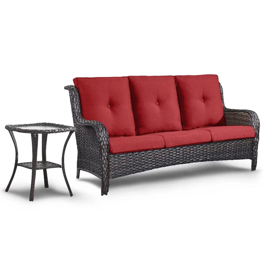 Elegant, casual style that doesn't compromise on comfort and durability - that's the design philosophy behind our products. The inner frame is made of powder coated aluminum, which is resistant to rust, UV rays and mildew, and the outer layer is wrapped in rattan for comfort and durability at the same time. The matching side table can be used to display items such as tea cups and books and magazines, perfect for chatting with family and friends outdoors.
