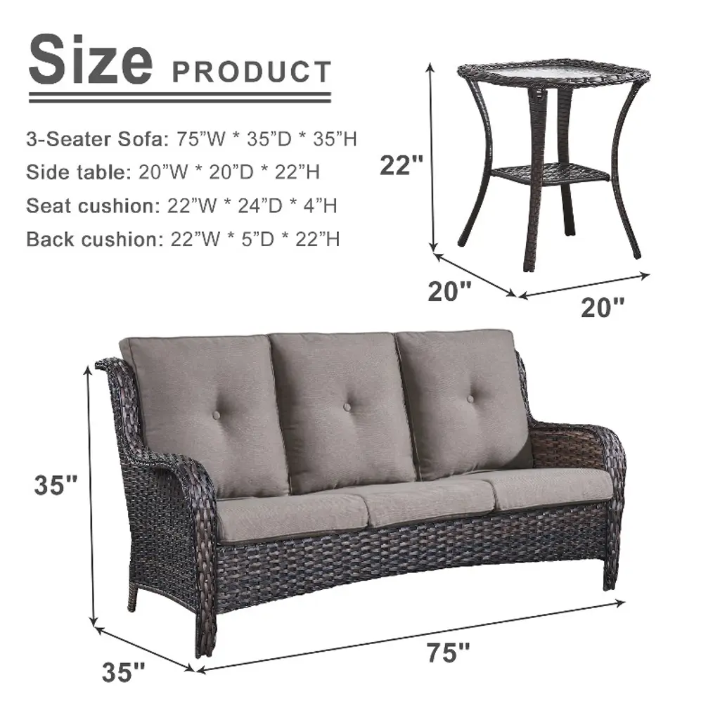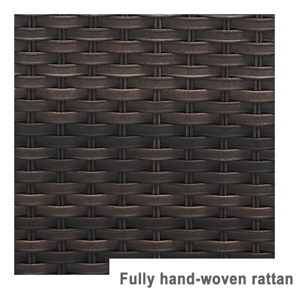 Elegant, casual style that doesn't compromise on comfort and durability - that's the design philosophy behind our products. The inner frame is made of powder coated aluminum, which is resistant to rust, UV rays and mildew, and the outer layer is wrapped in rattan for comfort and durability at the same time. The matching side table can be used to display items such as tea cups and books and magazines, perfect for chatting with family and friends outdoors.