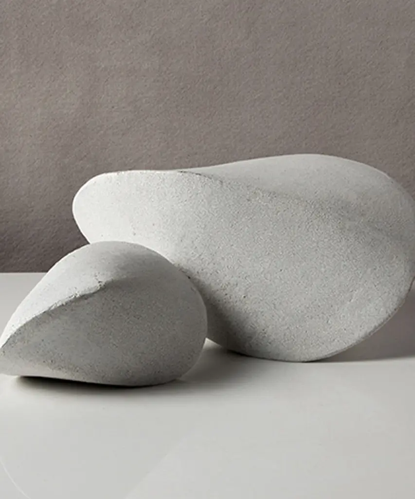 The Pod collection takes the oloid a simple but mesmerizing geometric form and gives it life with organic, tactile finishes. Designed by JOHN SHEPPARD STUDIO in union with artisans and localities steeped in centuries of craft and trade.