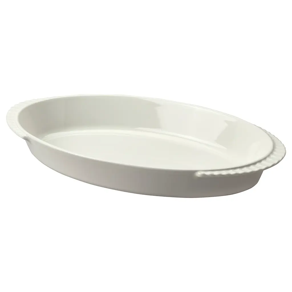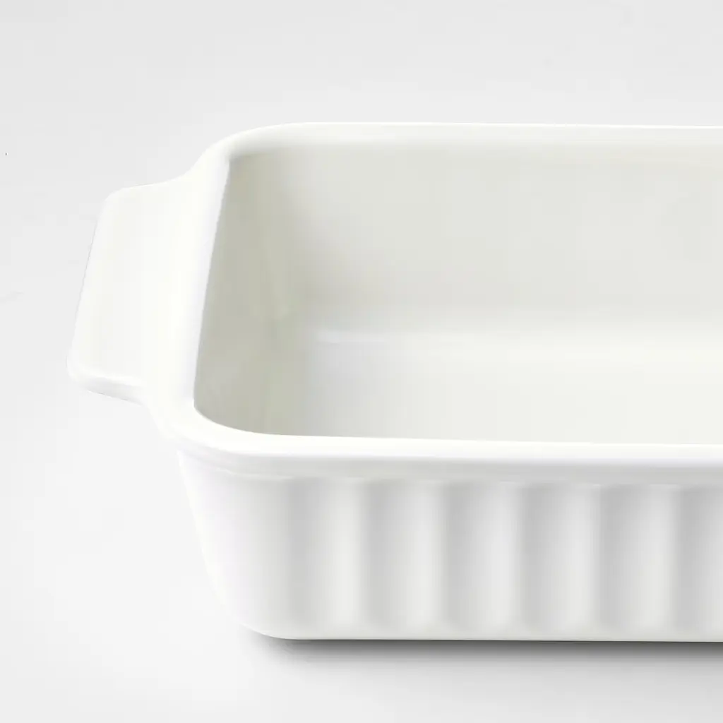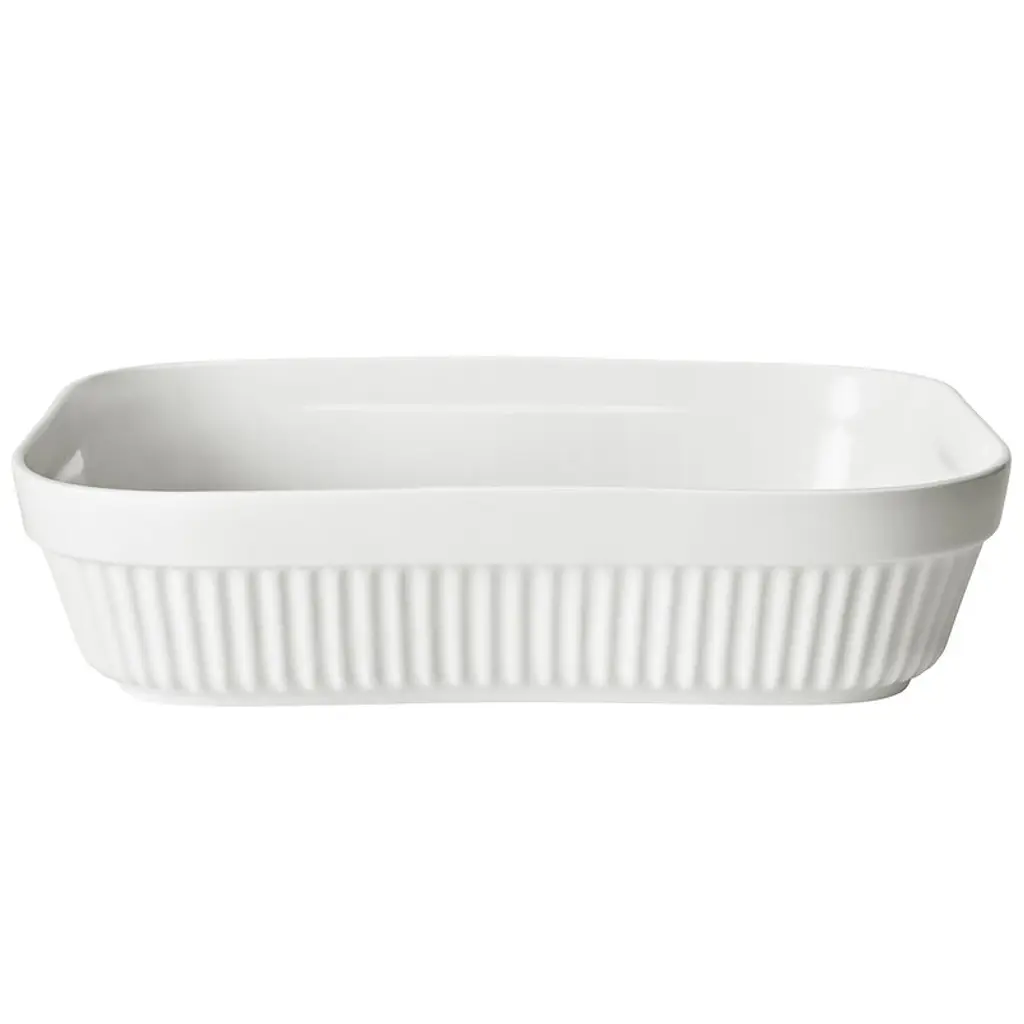 POETISK Baking dish - off-white 12x8 ". Practical oven dish that you can use to make various favorite dishes like potato gratin, lasagna, pies – or why not a tasty fruit cake? The ribbed design gives the oven dish a beautiful and timeless look, so you'll gladly put it on the table and serve from it.
