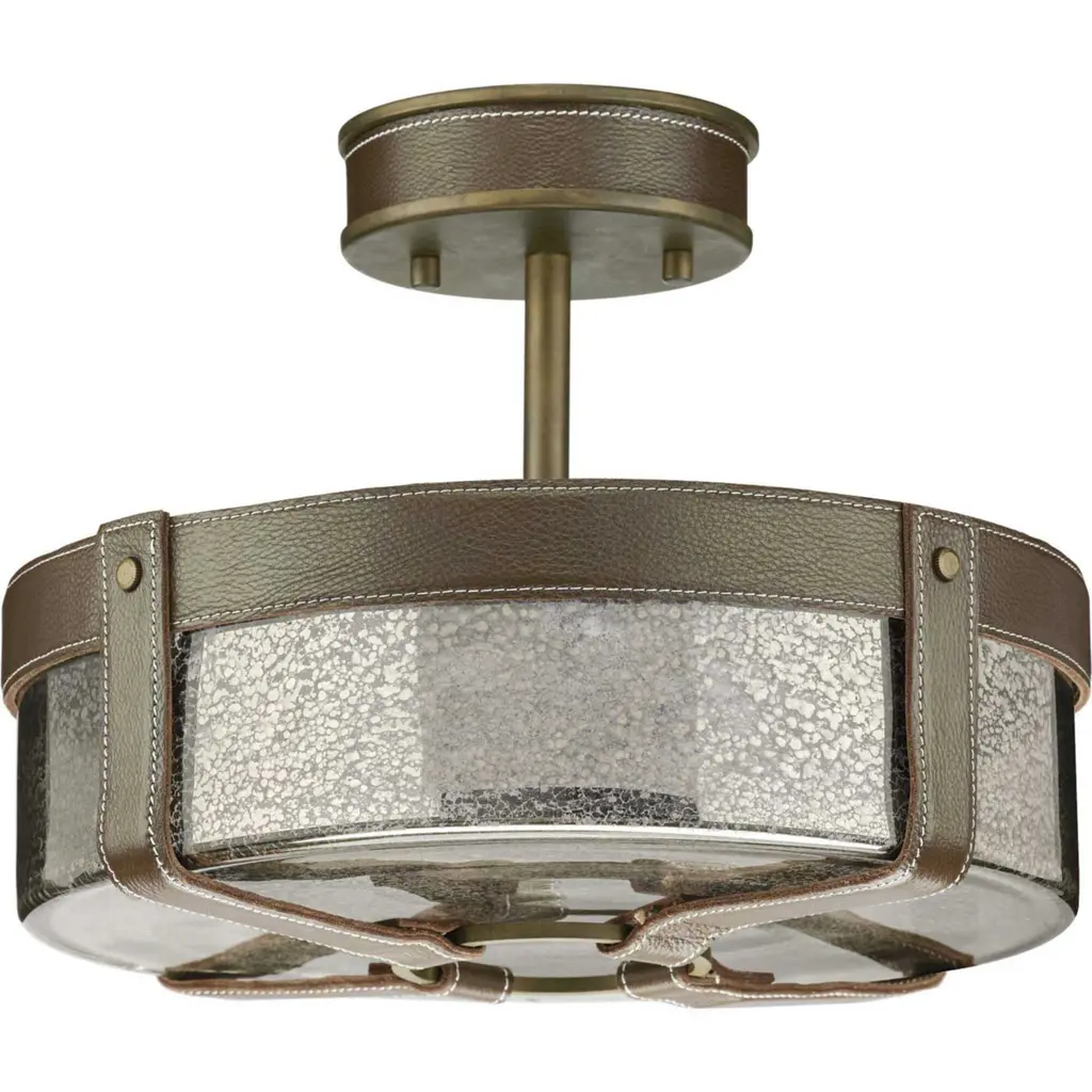 The Rockdance semi-flush ceiling light in Aged Brass is part of a graceful series fashioned from surprising design elements that, together, form a signature look. The mercury glass semi-flush is trimmed in dark brown leather strapping, giving substance and form to function. With the styling of a bespoke handbag or boot, the details that punctuate this exciting group are certain to become design favorites for generations. This family of fixtures is part of the Point Dume™ lighting collection which celebrates a curated mix of yesterday and today, distilling both industrial and artisanal influences.