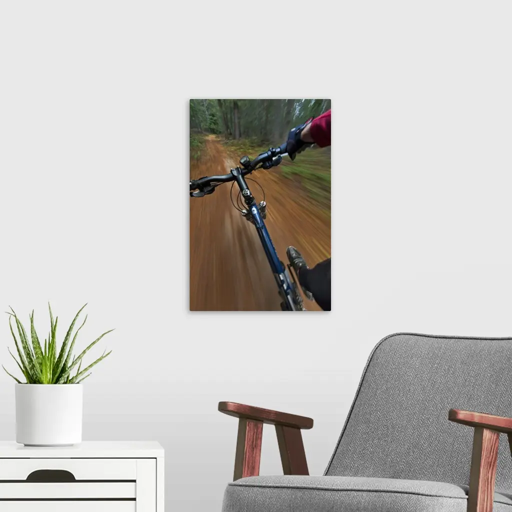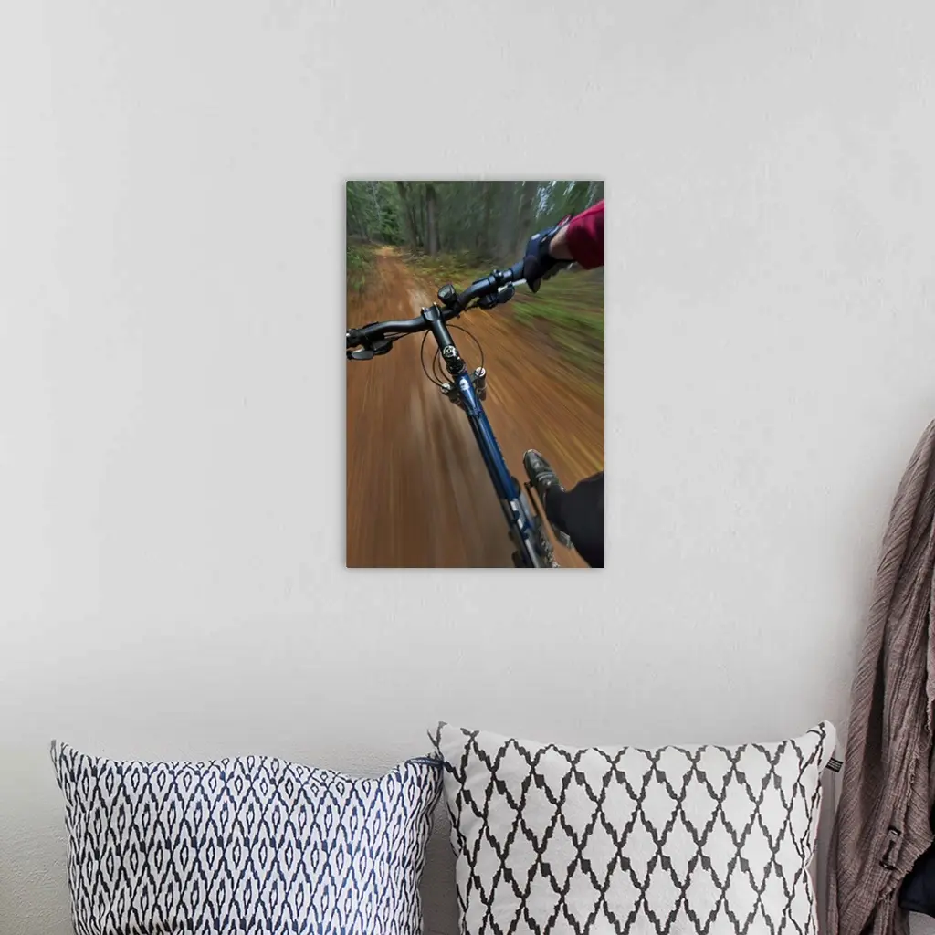 Point of view of singletrack riding at the Pig Farm Trails near Whitefish, Montana, USA