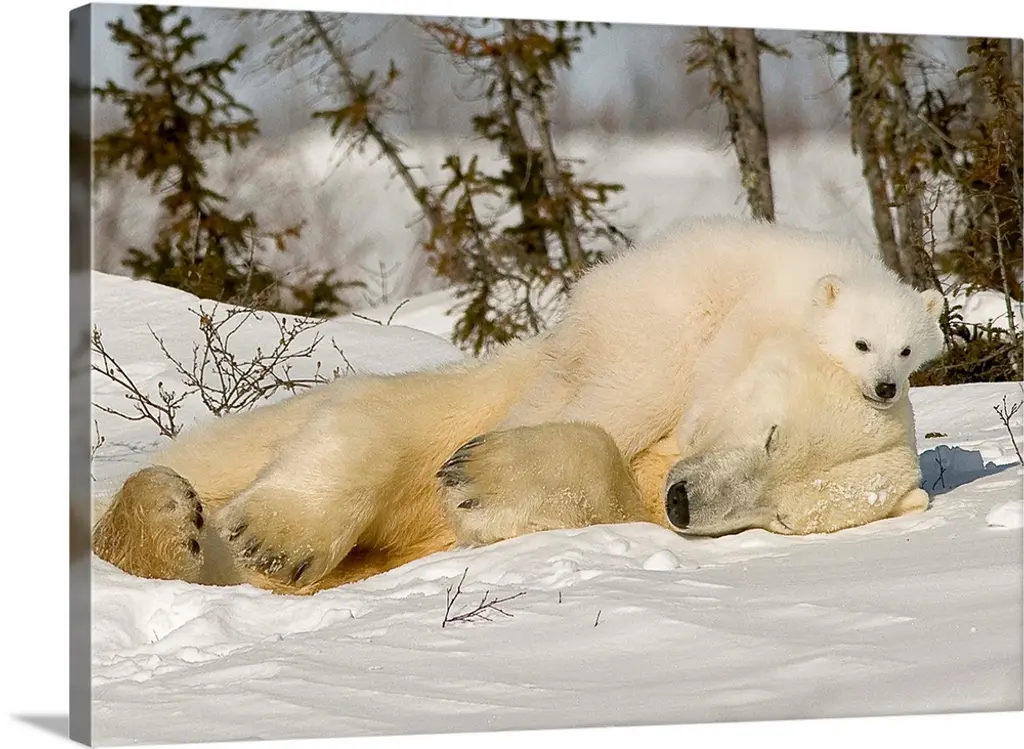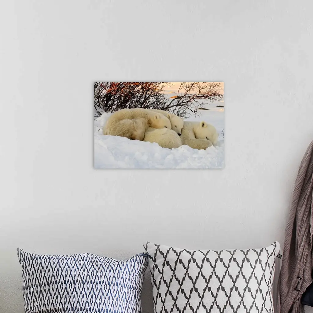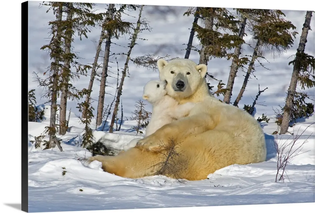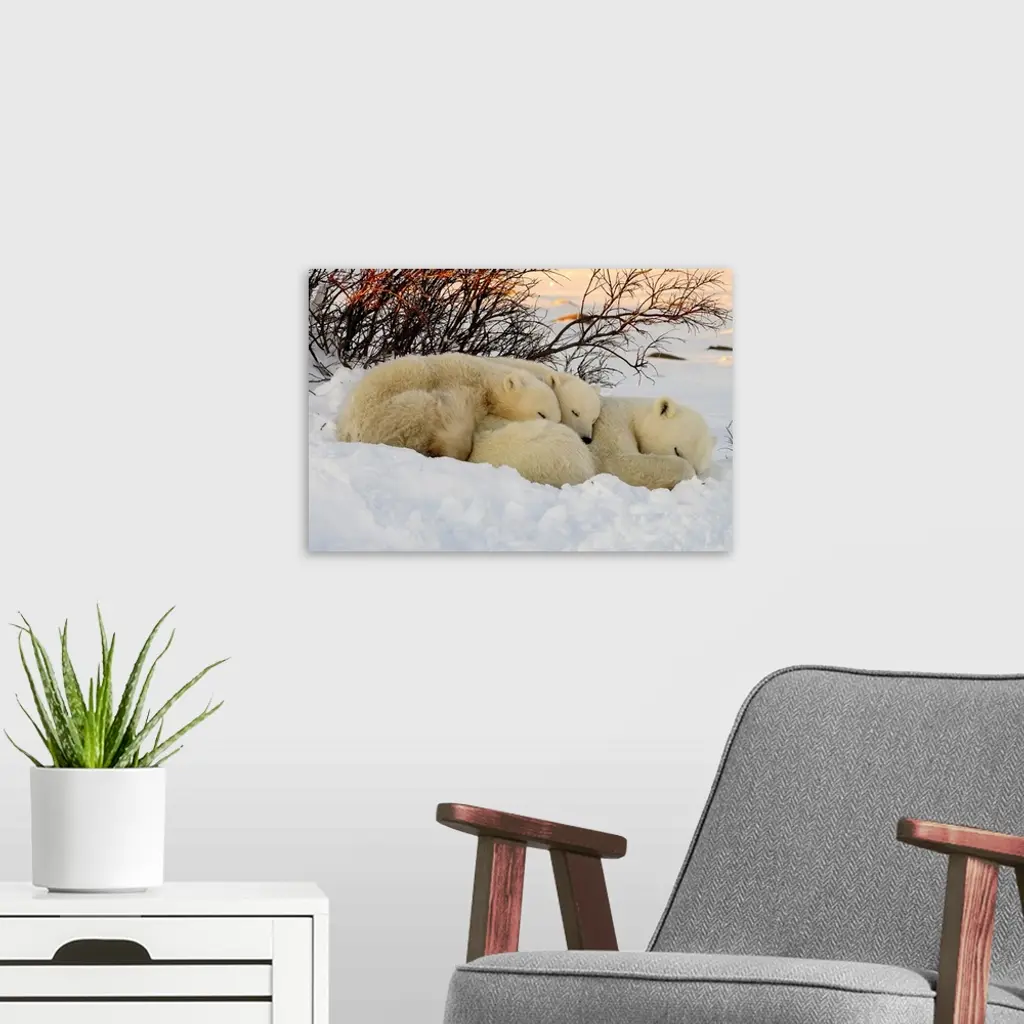 Polar Bear Mother And Cubs, Churchill, Manitoba, Canada