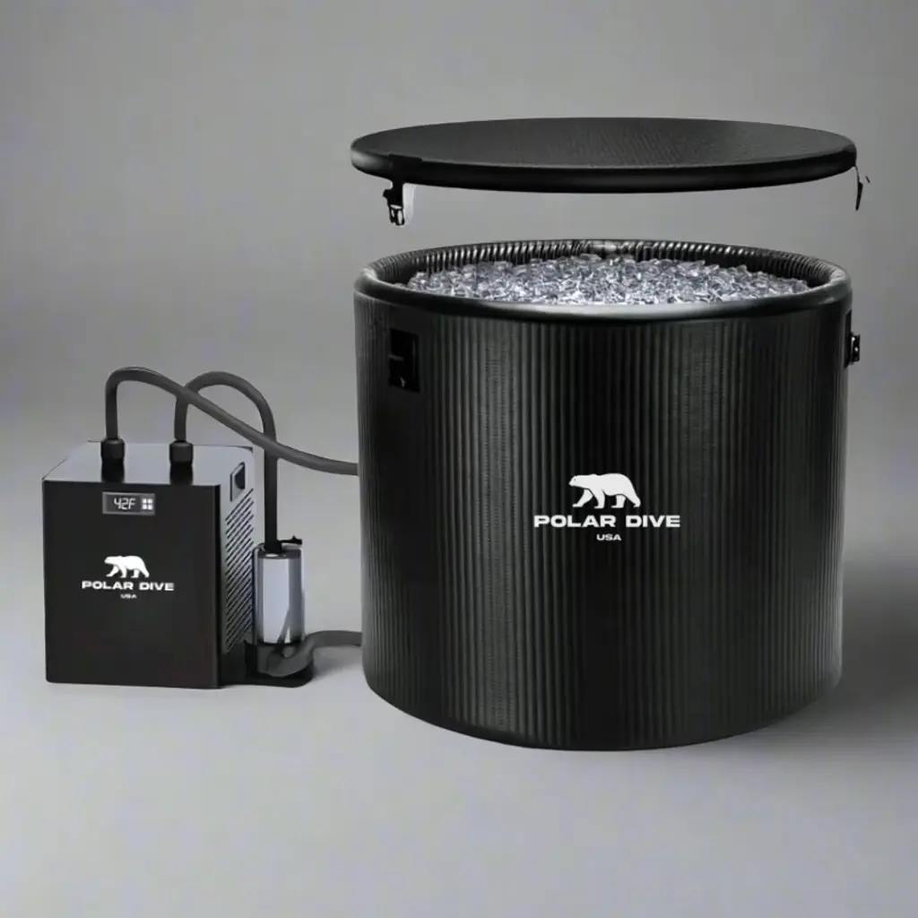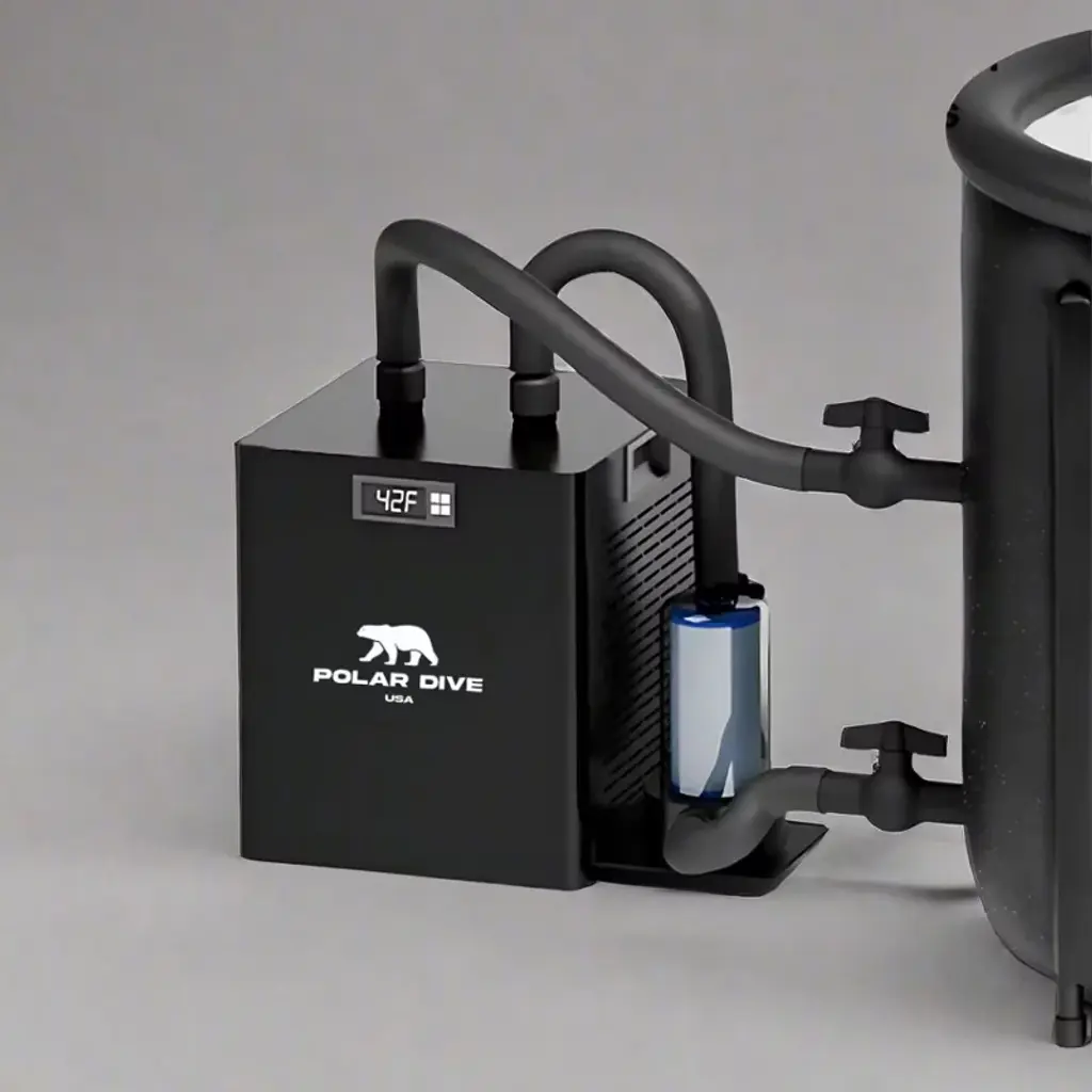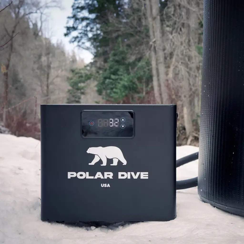 Are ice baths a part of your fitness regimen? Skip all the ice and instead use this affordable Ice Bath Chiller from Polar Dive USA! The 1/3-HP V5 chiller is the ultimate solution for your ice bath routine that doesn't break the bank like most other ice bath chillers on the market. It measures just 12 in. x 12 in. x 13 in. and brings your water down to a refreshing 39°F in no time. It's time to save time and hassle - at only 40 lbs., it is incredibly lightweight and easy to move around. And you'll find it is super quiet (44 dB), offers 20-micron filtration, and provides 24/7 water flow to maintain clean and clear water for weeks to possibly even months. With this chiller, you won't have to run to the store for ice ever again when you want to use your ice bath. Polar Dive USA's Water Chiller is for indoor and outdoor use, extremely energy efficient, and compatible with all bathtubs and ice bath tubs. Please note that if you want to use this chiller with a non-plunge-style tub, a separate submersible pump is required and is not included. The Water Chiller comes with 2 Polar Dive hose connectors and seal rings, 1 hose set plus insulation, 20-micron water filter and pump unit, power cable, instruction manual, and a 12-month full warranty. _