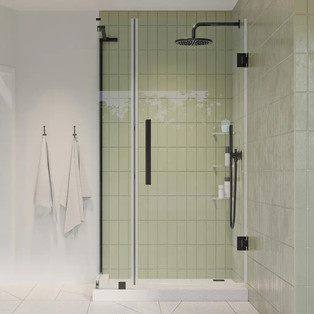 For an affordable upgrade to your bathroom without compromising on quality or design, the Polaris, our double sliding (bypass) shower doors, will enhance the natural light in your bathroom. Taller than most competitor shower enclosures, our frameless 3/8" tempered glass panels come in a standard 78" height with two sliding barn-style doors featuring dual towel bars. Glass is treated on both sides with EnduroShield coating, which aids in repelling water and soap residue, allowing the panels to be fully reversible. In addition, our superior quality stainless steel hardware is available in a variety of color finishes to suit any bathroom. The rolling mechanism is beautifully engineered and finished with square hardware, which will modernize the overall aesthetic of your space.