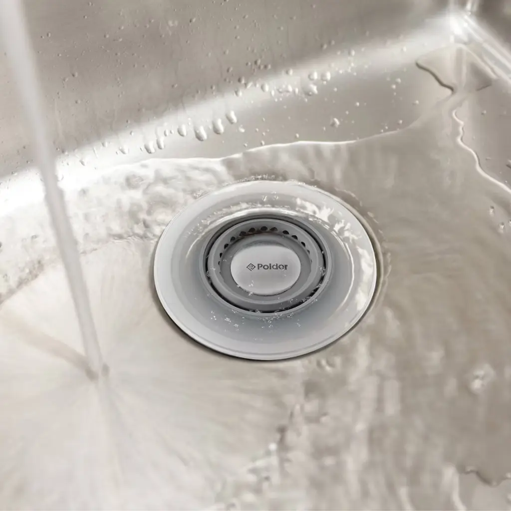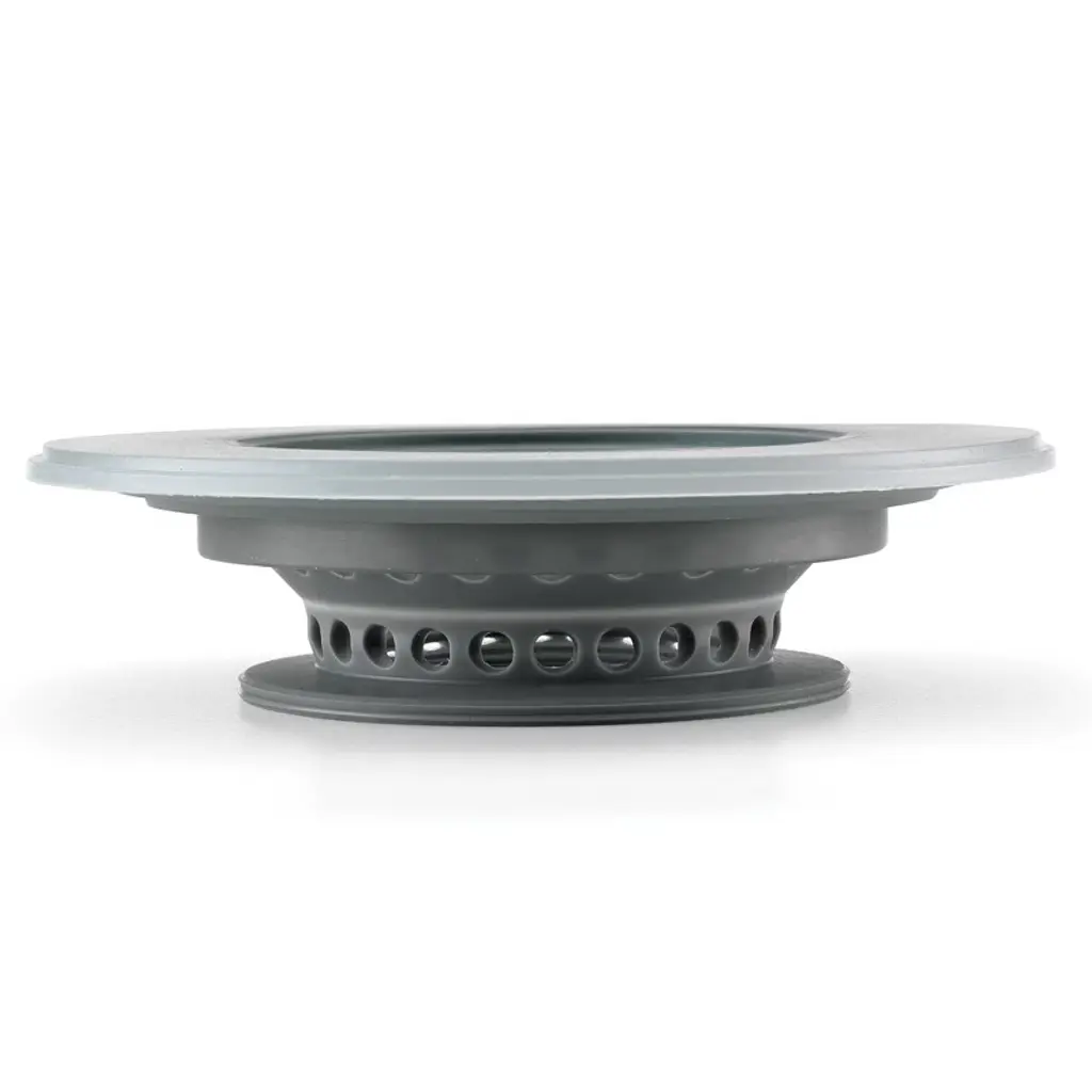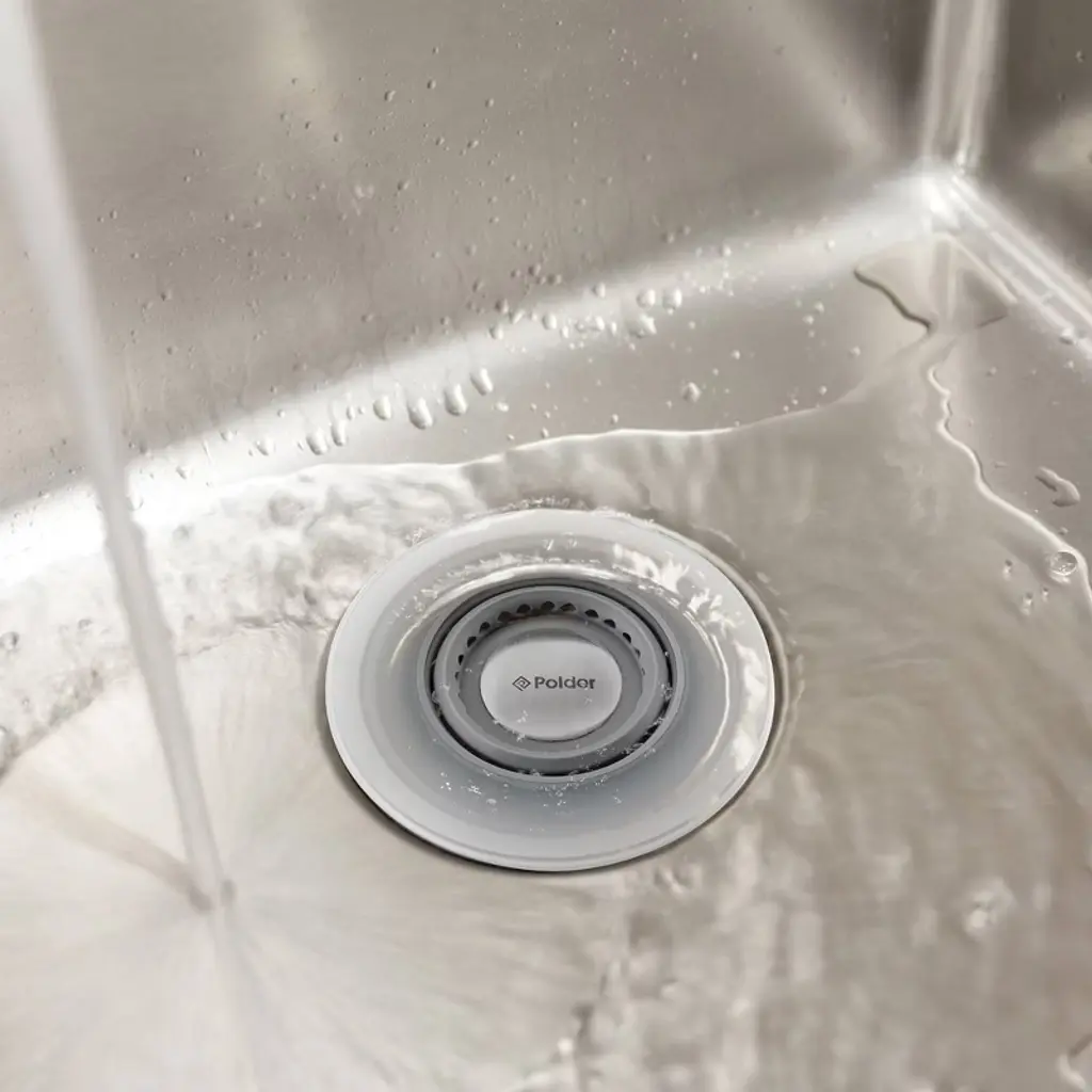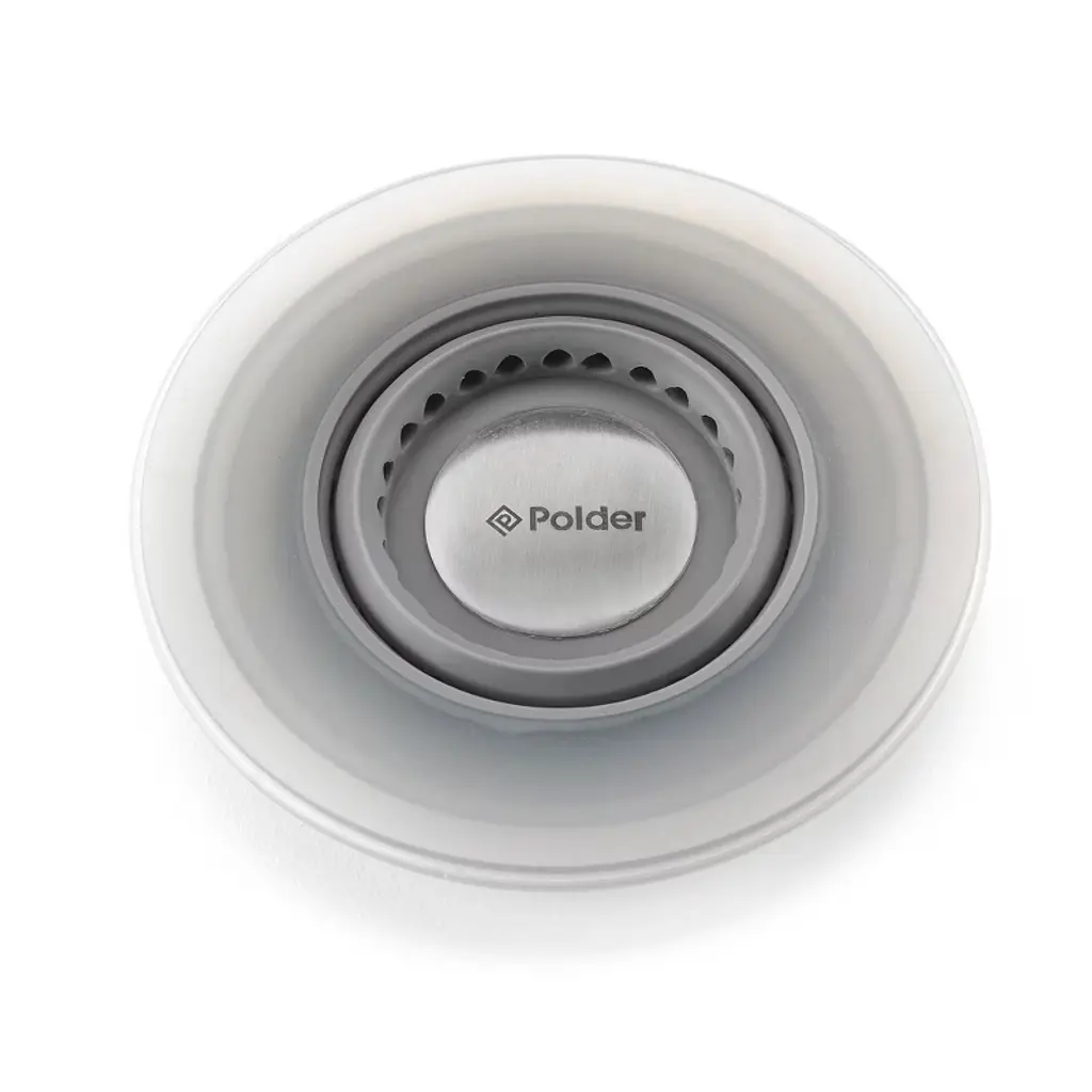 The Polder POP-UP Sink Strainer & Stopper is the next-generation solution for your kitchen sink. Made from 100% silicone, it forms a watertight seal to prevent leaks, offering superior performance over traditional stoppers. The flexible silicone basket easily collapses to close and presses down to open, providing quick drainage when needed. Constructed with rust-resistant stainless steel, it is built to last. The 4.5-inch diameter fits most standard sink openings, making it a versatile addition to your kitchen. Easy to empty, the basket collapses for simple disposal of debris. This dishwasher-safe strainer (top rack only) makes cleanup a breeze, while its innovative design ensures your sink stays free from clogs and water waste. Ideal for any kitchen, the Polder POP-UP Sink Strainer & Stopper combines style and functionality.