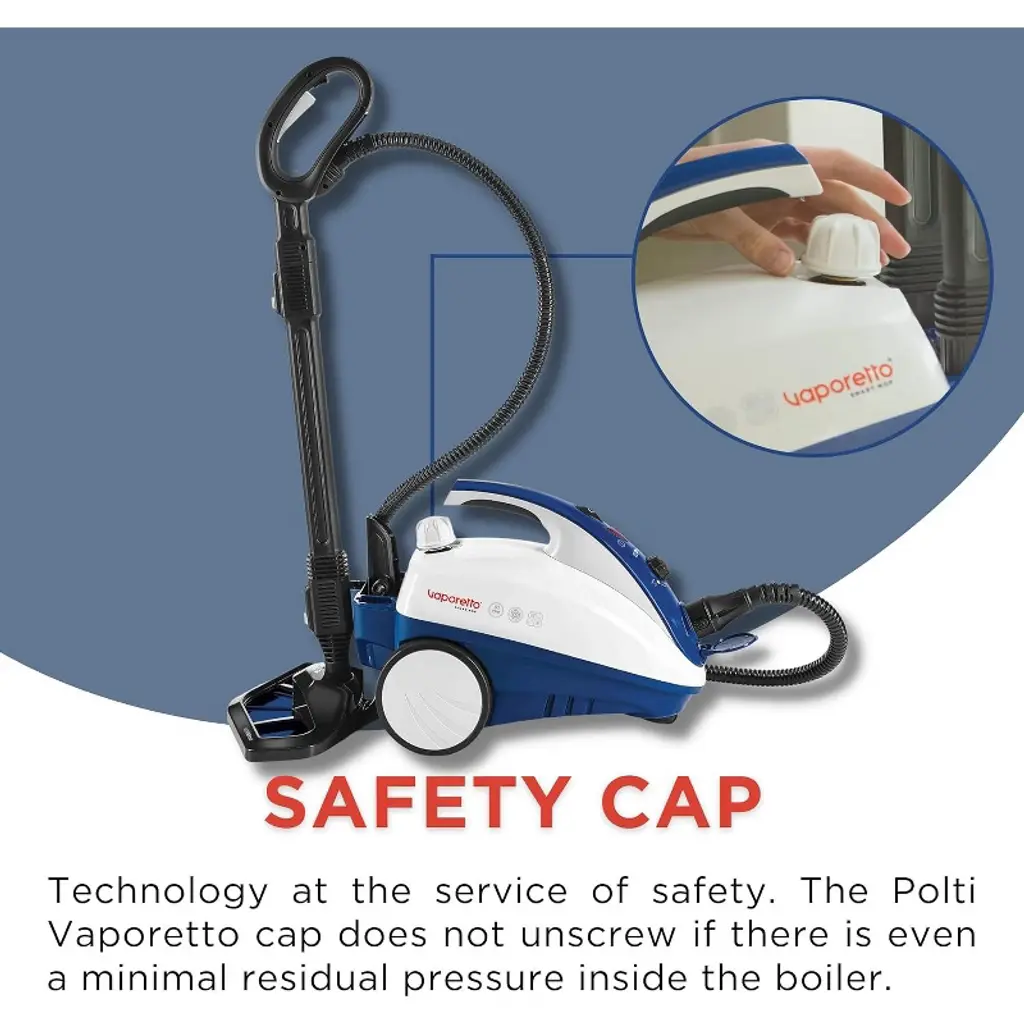 Polti Vaporetto Smart Mop is a steam cleaner that combines the strength of steam, generated by a high pressure boiler, with the practicality of a steam mop. Compact and provided with a complete set of accessories to effectively clean a number of surfaces: from floors to blinds, from hobs to curtains, from bathroom fixtures to plants and much more. The innovative Vaporforce brush makes it the perfect steam cleaner for carpets.