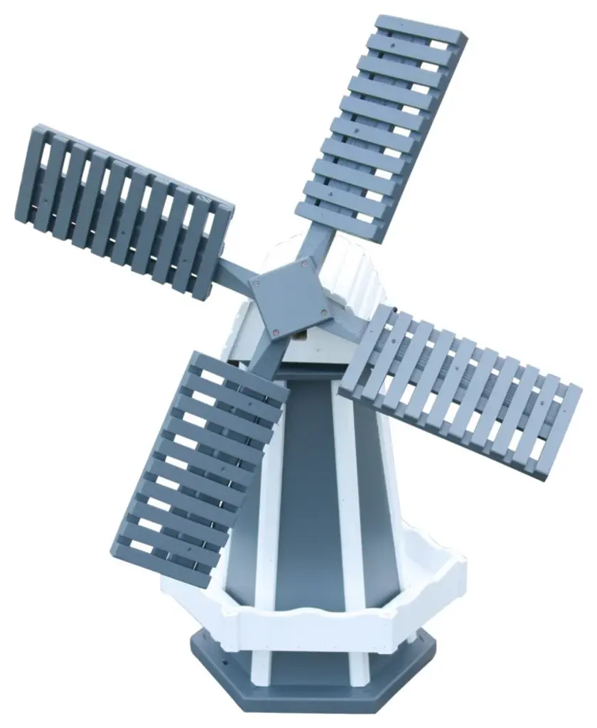 Introducing our Poly Lumber Lawn Windmill, a charming and eco-friendly addition to your outdoor space. Crafted with durability and sustainability in mind, this windmill is made from high-quality poly lumber, a material composed of recycled plastic. With its classic design and vibrant color options, it effortlessly enhances the aesthetics of any lawn or garden. Standing tall and gracefully rotating with the gentlest breeze, this windmill adds a touch of whimsy and character while harnessing the power of nature. Weather-resistant and maintenance-free, it will delight you with its mesmerizing spinning motion for years to come, making it the perfect choice for those seeking a sustainable and captivating accent for their outdoor oasis.Amish made in the USAMade from durable poly lumberDigital colors may vary slightly from actual product colors