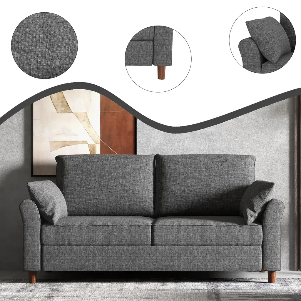 This sofa is available in two types: 3-seat and 2-seat sofa, both upholstered in high-quality polyester fabric. The design is modern and sleek, perfect for contemporary living spaces. The sofas are generously padded, offering superior comfort and support. They come with a set of plush, matching cushions that enhance both the aesthetic appeal and the comfort level. The neutral color scheme of the fabric makes these sofas versatile, easily fitting into various interior decors. Features: